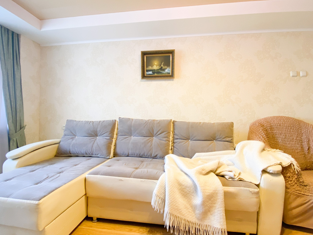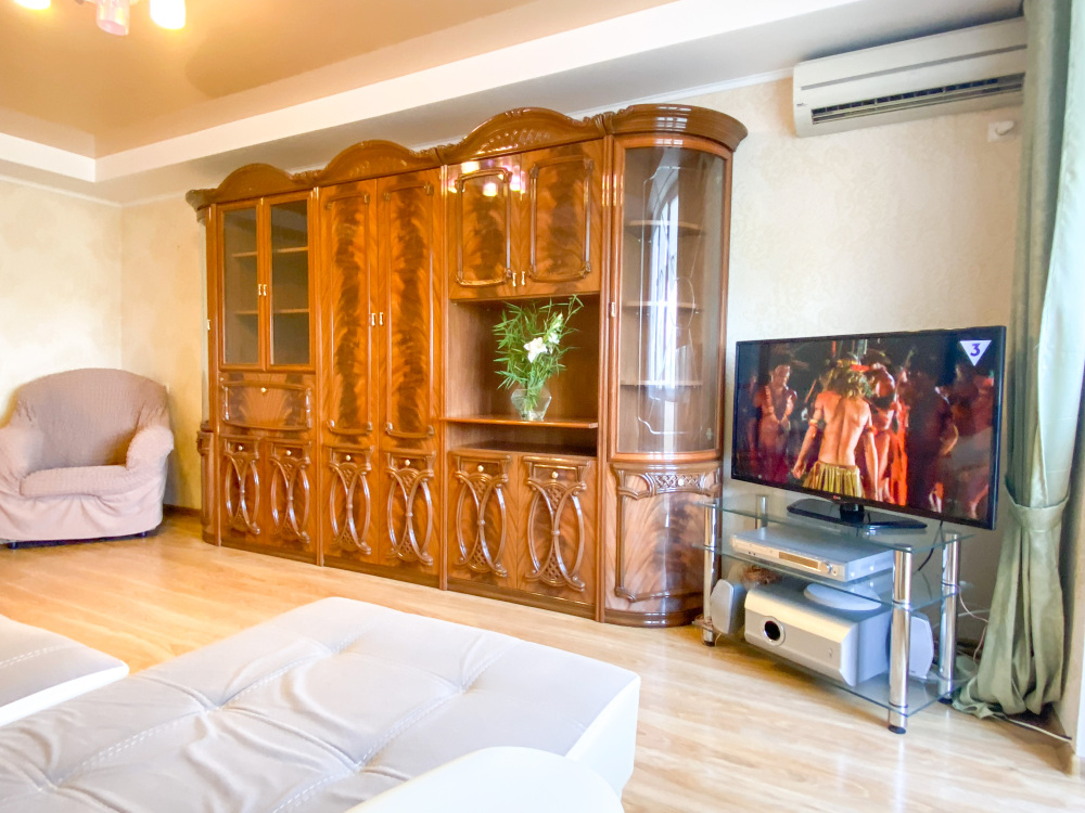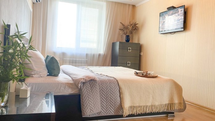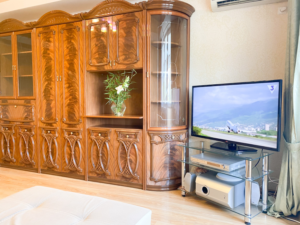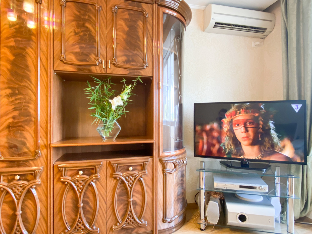 В квартире есть все для комфортного проживания, в каждой комнате кондиционер и телевизор, комнаты изолированы, двуспальная кровать King size шириной 180 см, большой диван, шкаф, телевизоры, стиральная машина, холодильник, кондиционеры, СВЧ, утюг, фен , Wi-Fi. Предоставляется чистое белье, полотенце, посуда, средства гигиены. Бесплатная парковка во дворе.