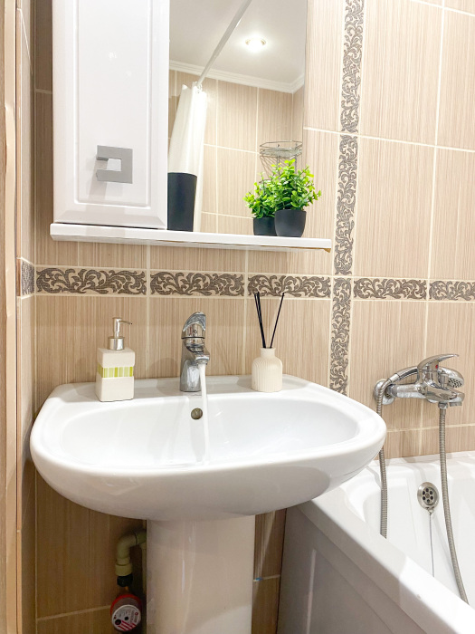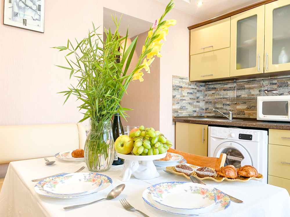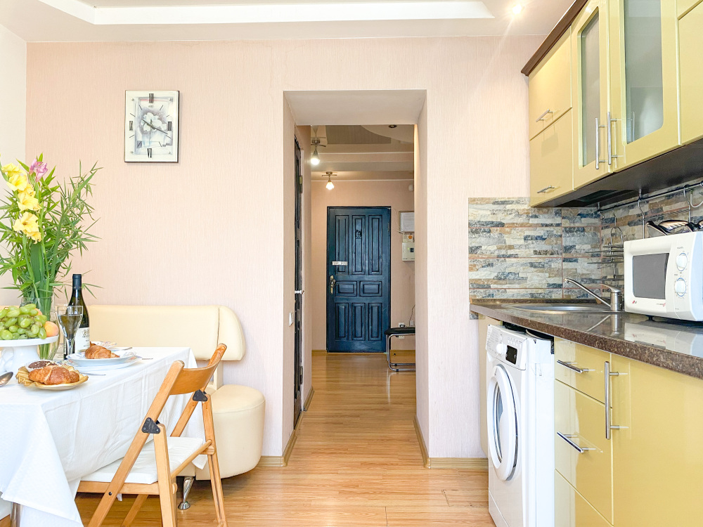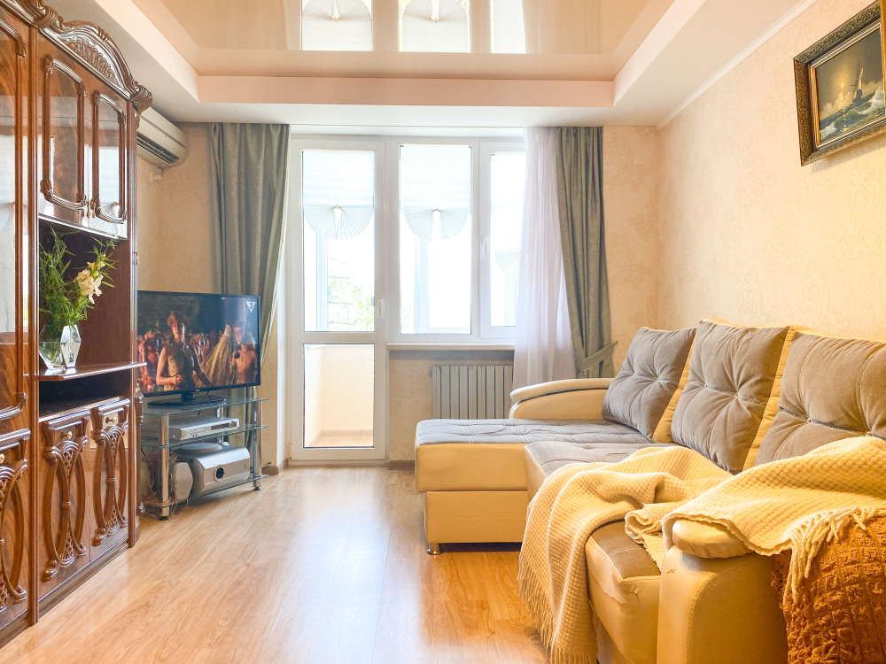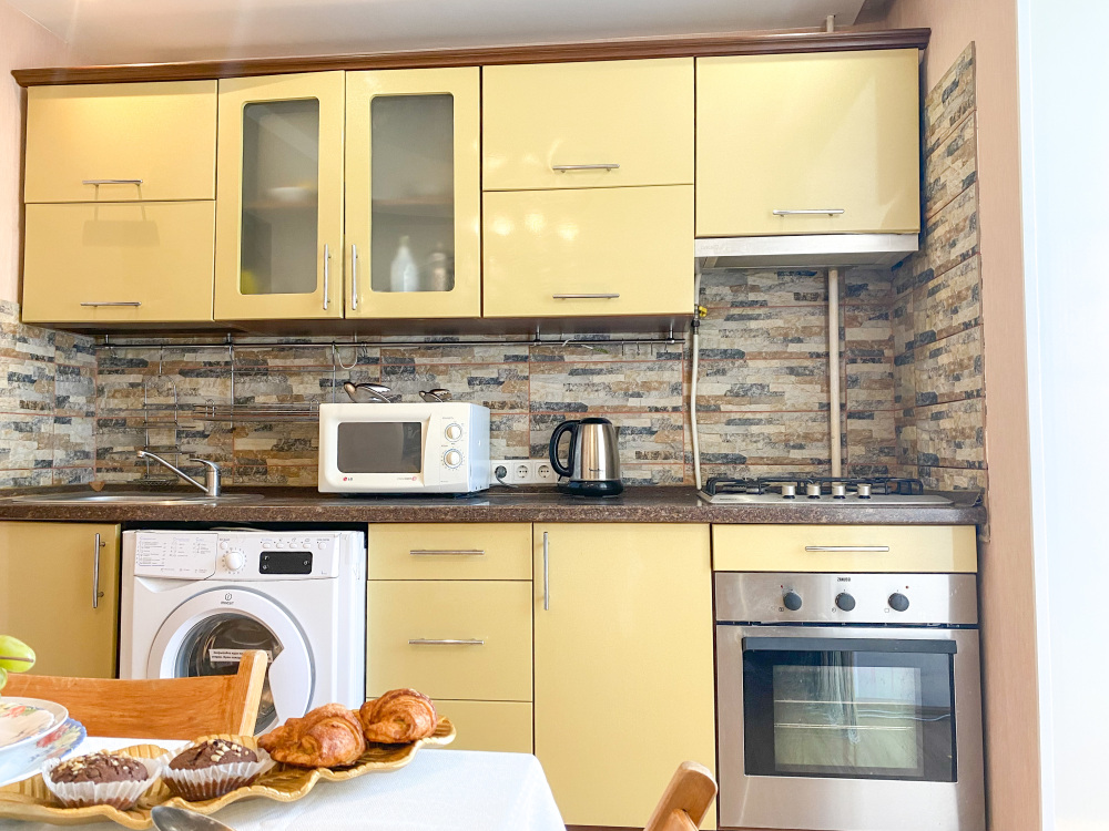 В квартире есть все для комфортного проживания, в каждой комнате кондиционер и телевизор, комнаты изолированы, двуспальная кровать King size шириной 180 см, большой диван, шкаф, телевизоры, стиральная машина, холодильник, кондиционеры, СВЧ, утюг, фен , Wi-Fi. Предоставляется чистое белье, полотенце, посуда, средства гигиены. Бесплатная парковка во дворе.