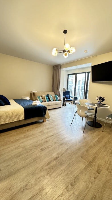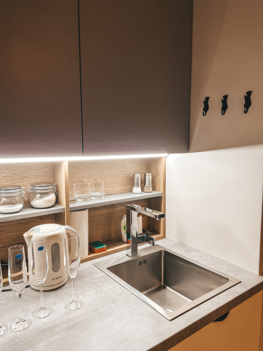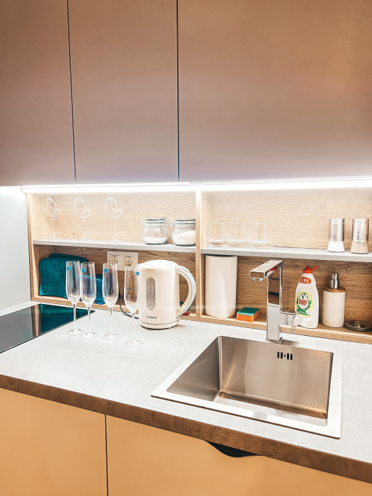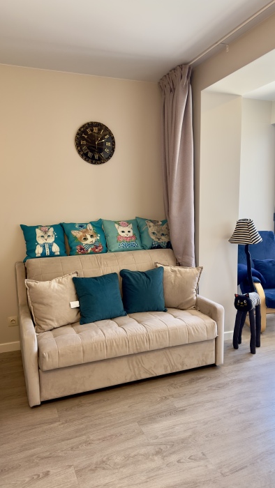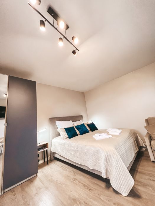 В апартаментах 4 полноценных спальных места. Апартаменты полностью оборудованы всем необходимым для комфортного проживания 4-х человек. Всех наших гостей при заселении будет ждать приветственный набор расходников и одноразовых тапочек. Так же мы подготовим комфортабельную кровать с очень удобным матрасом для одного или двух гостей и не менее удобный европейский диван-кровать для третьего и четвертого гостей. Для глажки, сушки и стирки постельного белья мы пользуемся исключительно услугами профессиональной прачечной.