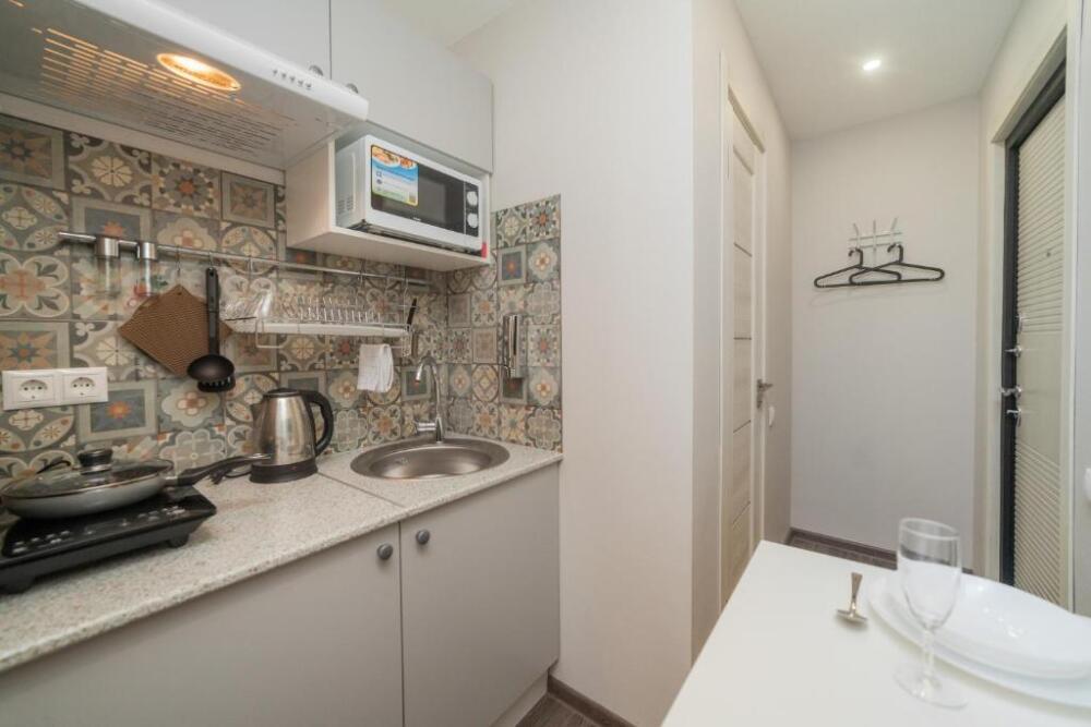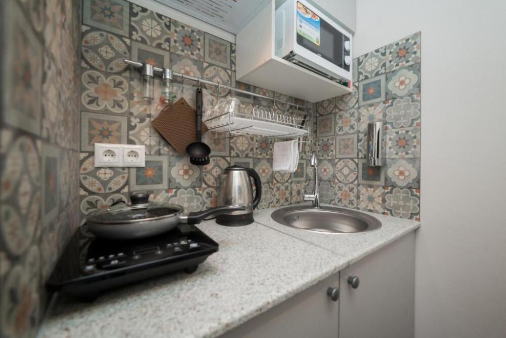 Оснащение: телевизор, кухонная зона, холодильник, электрический чайник, микроволновая печь, электрическая плита, фен.