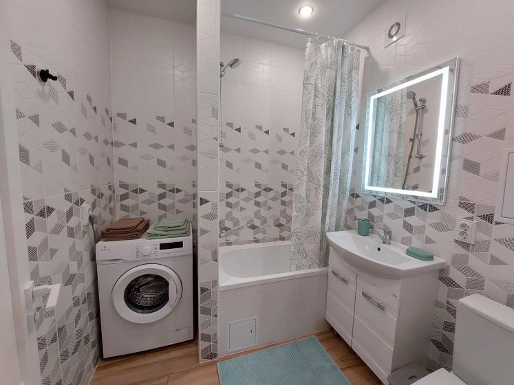 В квартире все есть для комфортного проживания 4 гостей. Кровать размера (140х 200 см), высокоскоростной wi-fi интернет, большой телевизор smаrt tv, yоutubе. Удобный диван со спальным местом 140×200 см, обеденный стол, кухня полностью оборудована для самостоятельного приготовления еды (микроволновая печь, плита, холодильник, полный набор посуды и кухонных принадлежностей), санузел, ванна, стиральная машина, распоряжении гостей подогрев пола. Полное оснащение гигиеническими средствами (гель для душа, шампунь, бальзам, крем-мыло для рук). Предоставляются: полотенца , постельное бельё, подушки, одеяла, фен, утюг, гладильная доска, сушилка для белья. Вместительный шкаф купе. Большая солнечная лоджия с удобными стульями.