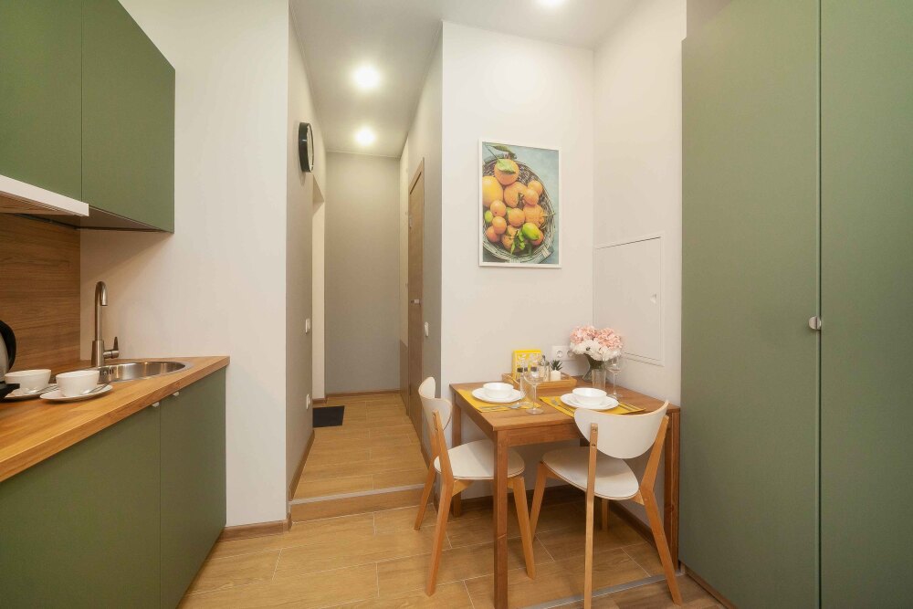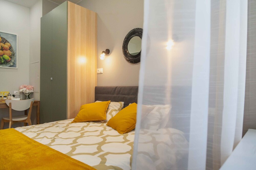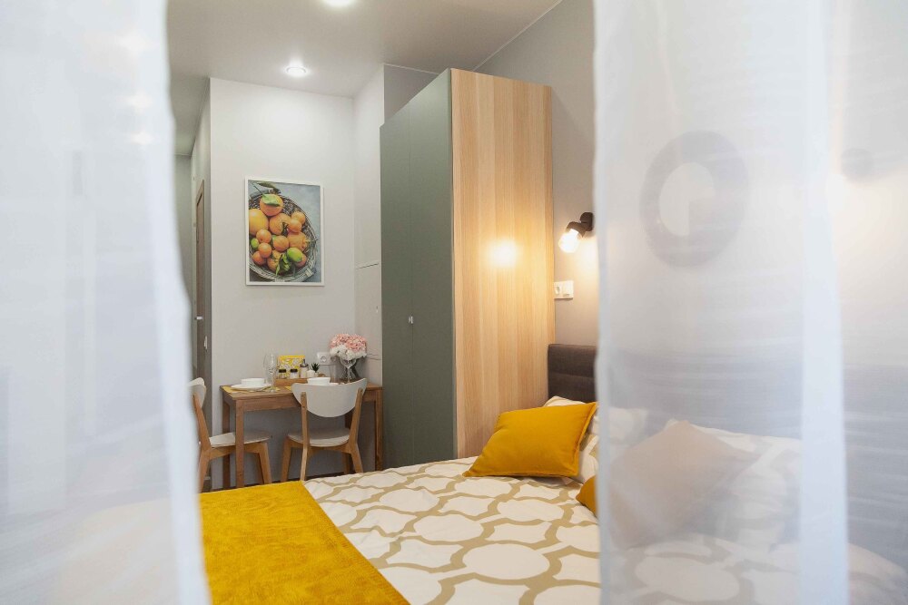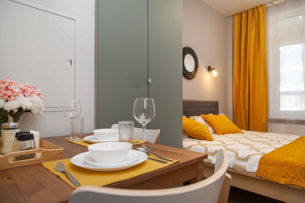 Студия расположена в ЖК «Тополя», прекрасный вариант для гостей, которые хотят комфорта. В шаговой доступности находятся несколько красивых парков.