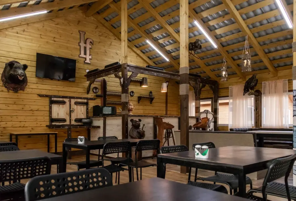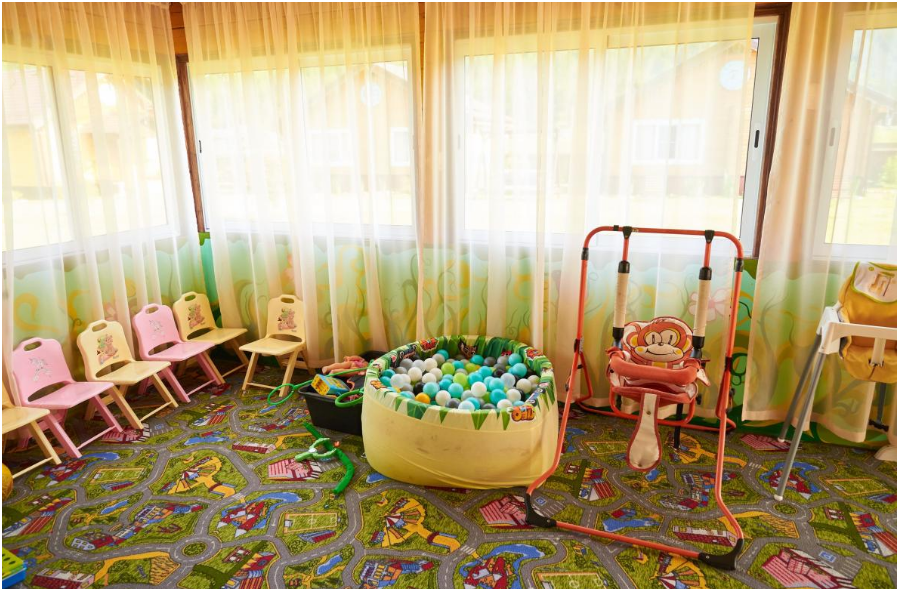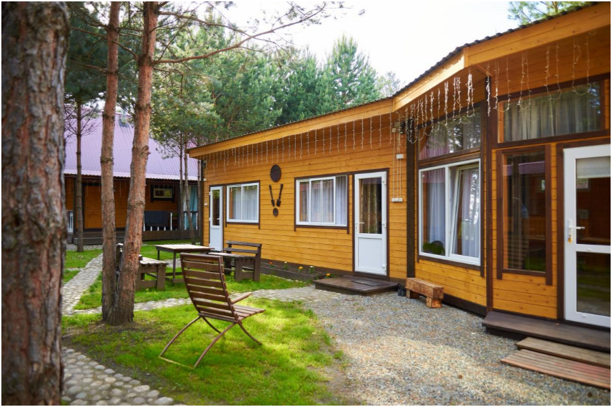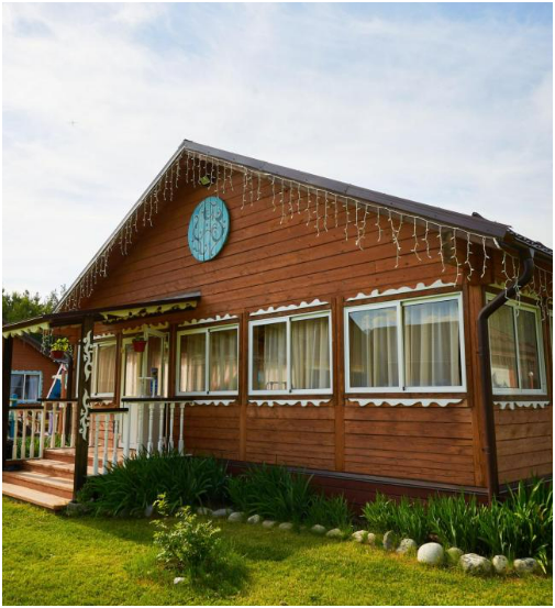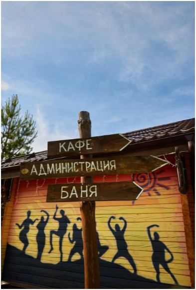 На территории усадьбы расположены три бани с дровяным отоплением, две детские площадки, каркасные бассейны для взрослых и детей, а также зал для тренингов и групповых занятий. Летом в летнем кафе можно насладиться завтраком, обедом или ужином, а также заказать блюда на гриле.