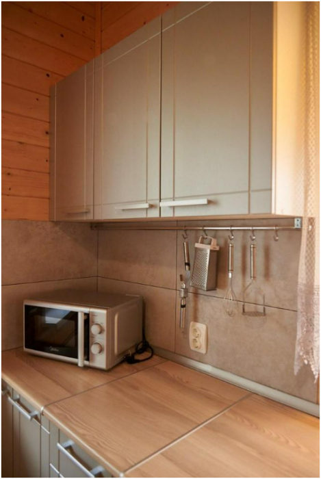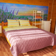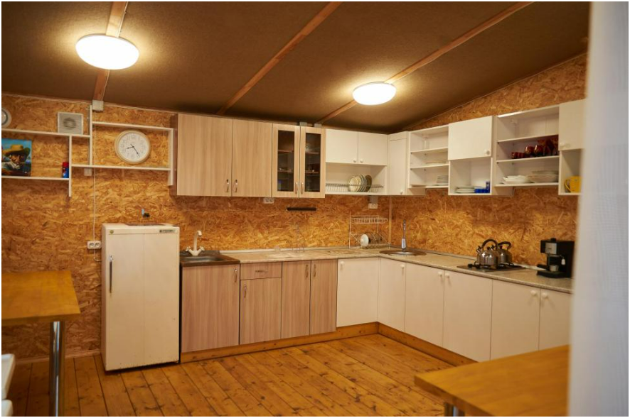 Просторная комната с двуспальной кроватью и односпальной кроватью. При необходимости кровати могут трансформироваться в три отдельные кровати. Кухня полностью укомплектована: холодильник, плита, микроволновая печь, чайник, а также вся необходимая посуда и столовые приборы.