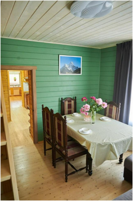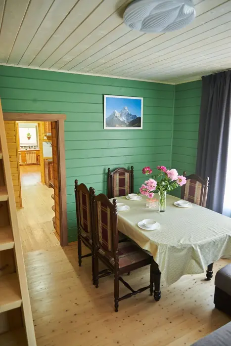 Уютная обеденная зона с большим столом на 6 человек.