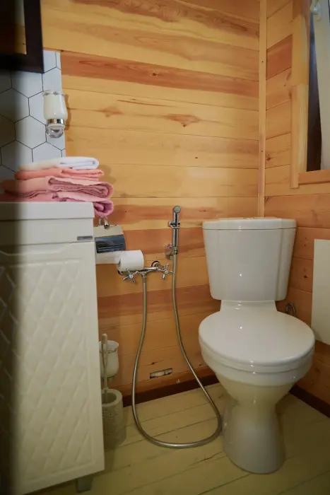 Ванная комната оснащена всеми необходимыми туалетными принадлежностями, полотенцами и феном.