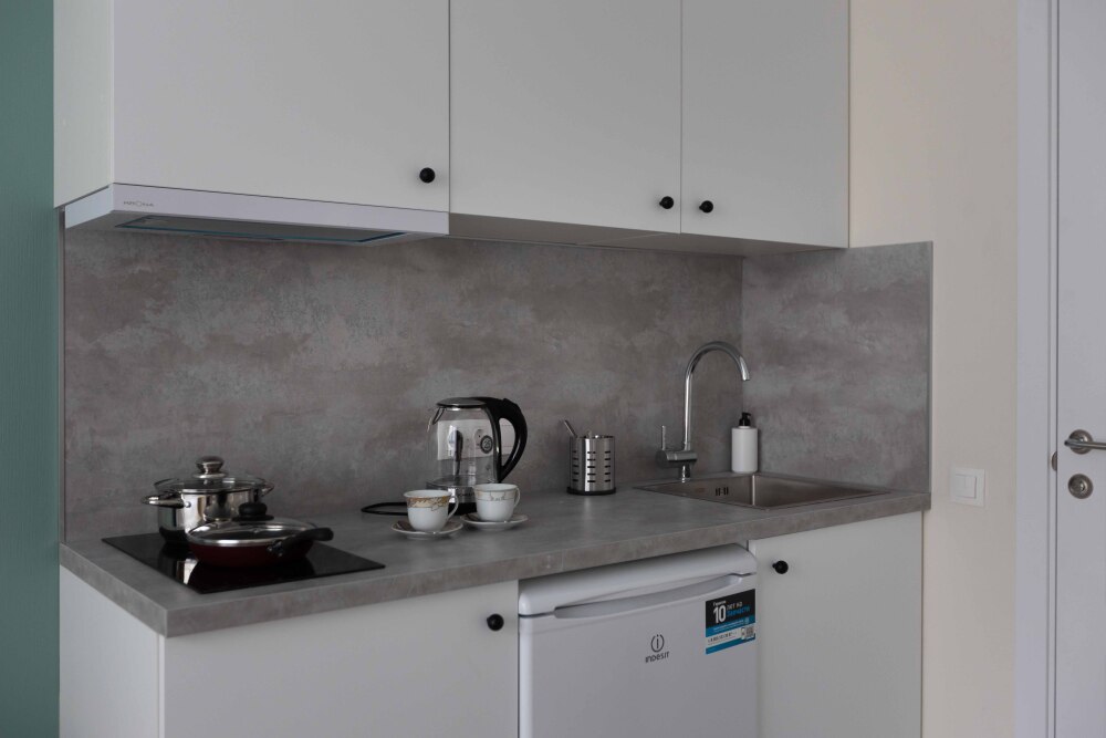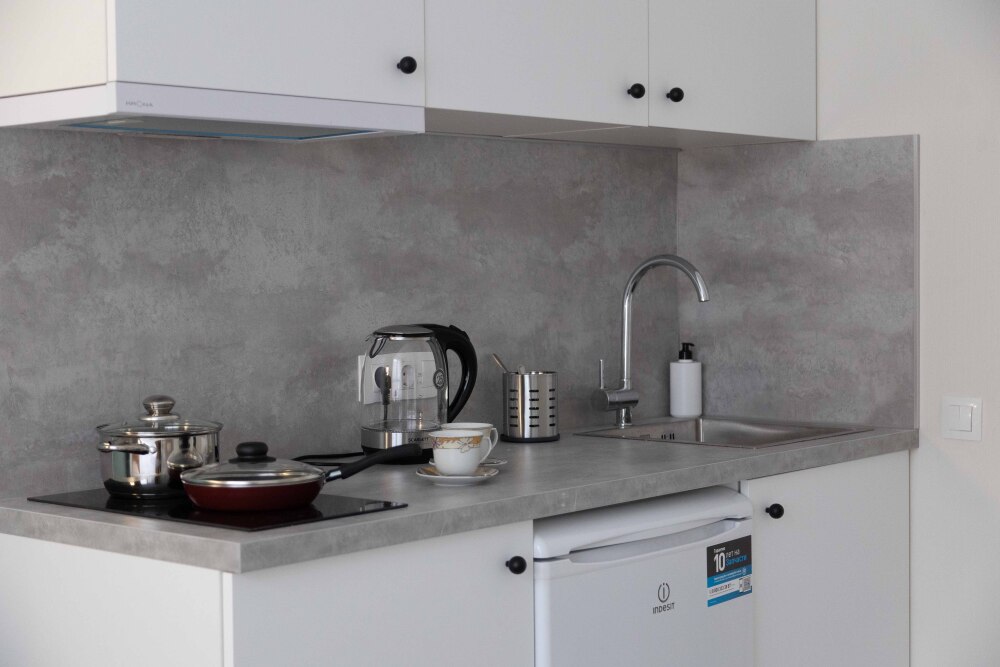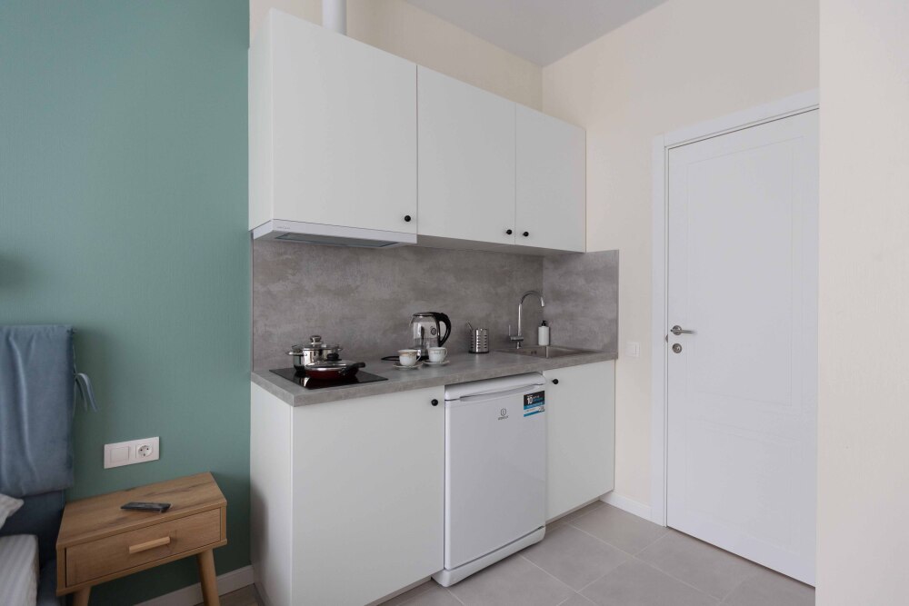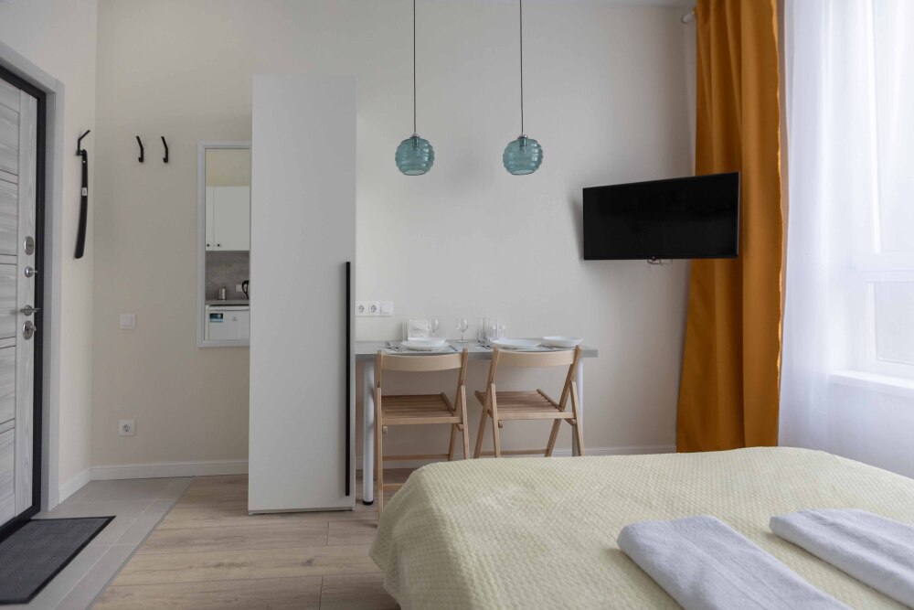 Оснащение: телевизор, кухонная зона , холодильник, электрический чайник, стиральная машина, кондиционер, электрическая плита, фен.