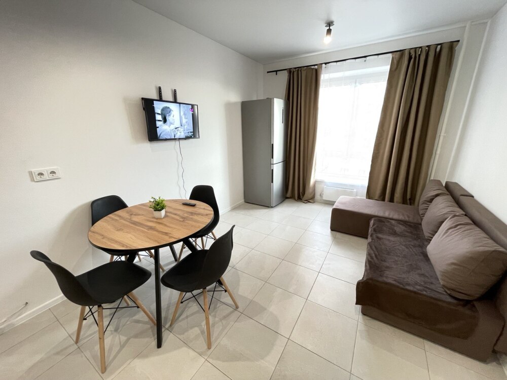 Квартира оборудована всей необходимой мебелью и техникой для проживания 4 гостей: