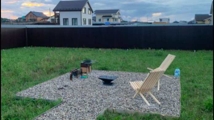 ✅ Костровая зона с удобными шезлонгами на 2-их, мангал и костровая чаша. Есть решетки и шампуры.