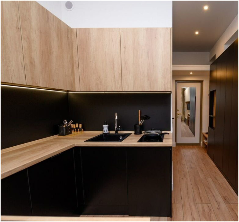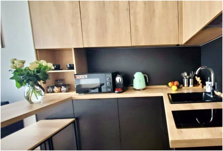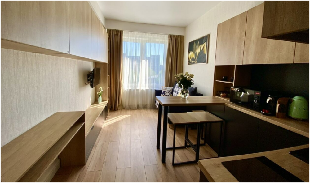 - Вся необходимая бытовая техника (стиральная машинка, гладильные принадлежности, холодильник, фен, телевизор со Smаrt ТV, утюг, микроволновая печь, чайник, электрическая плита).