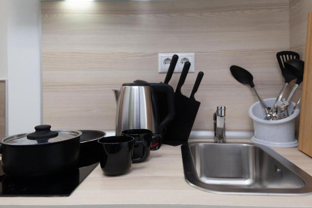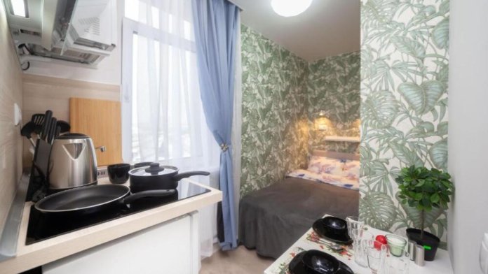 Оснащение: телевизор, кухонная зона, холодильник, электрический чайник, микроволновая печь, электрическая плита, фен.