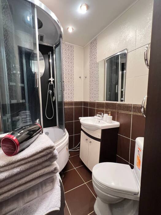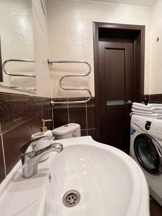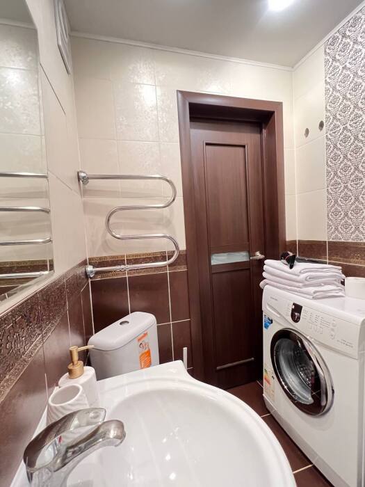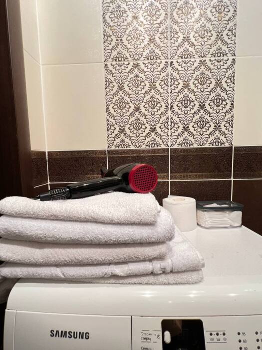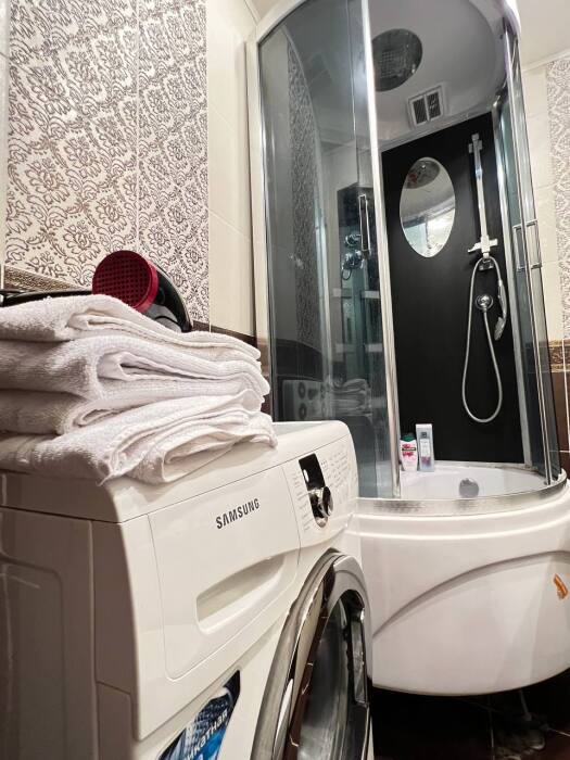 В ванной комнате Вас ждёт полный комплект средств гигиены шампунь, гель, мыло, бумага для Вашего комфорта мы подготовили фен также есть стиральная машина.