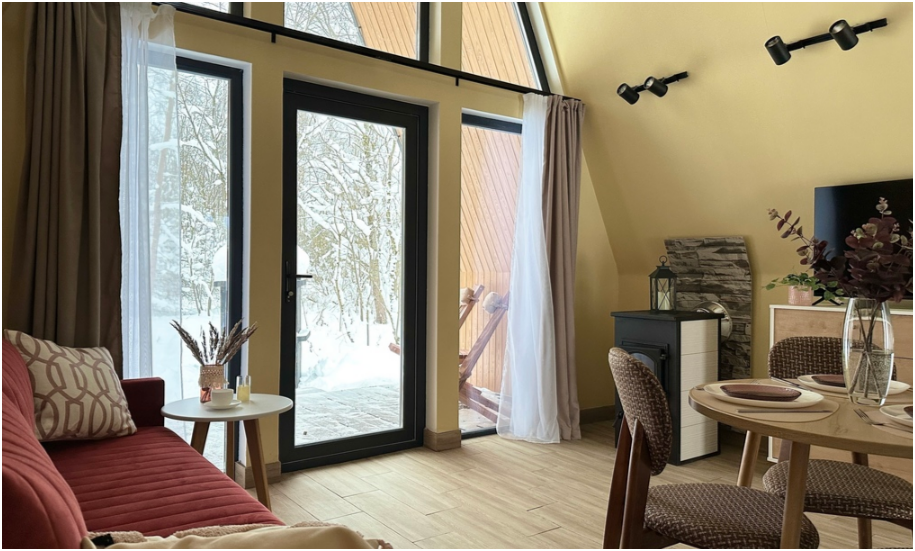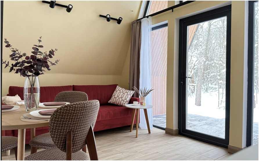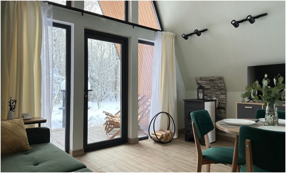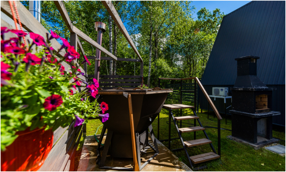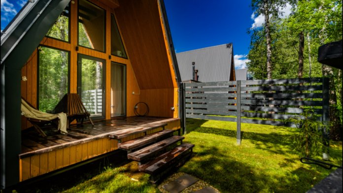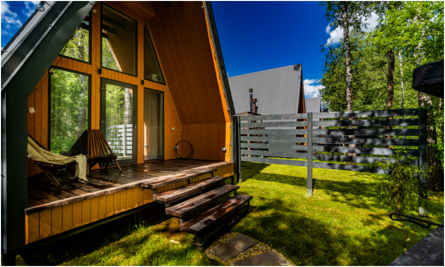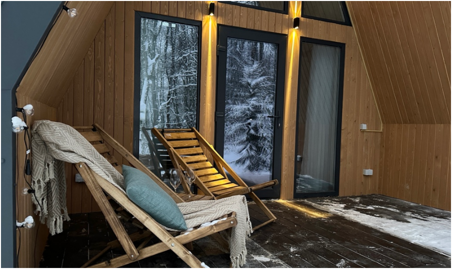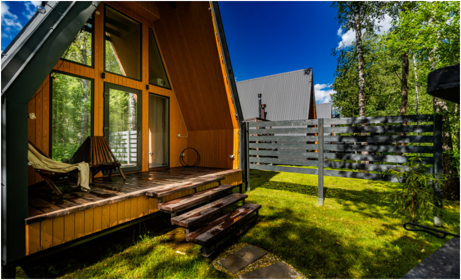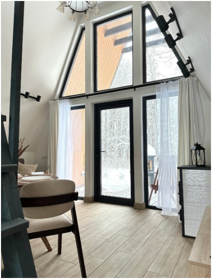 Нa большой территории окруженной лесом, cтоит 4 А-фрейма и 5 Барнхаусов. Одновременно можем принять компанию 50 человек.