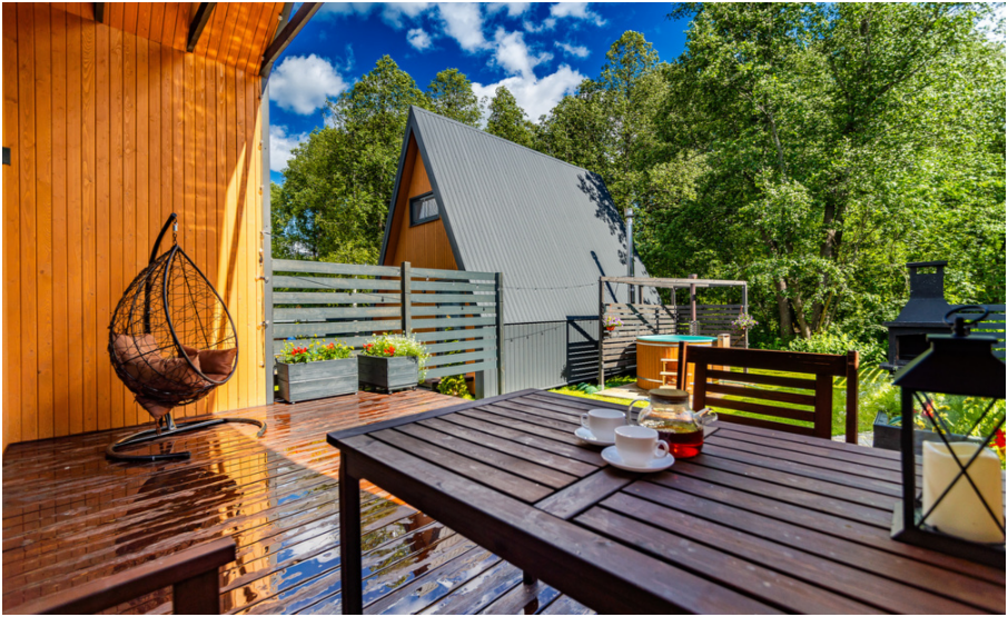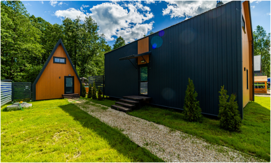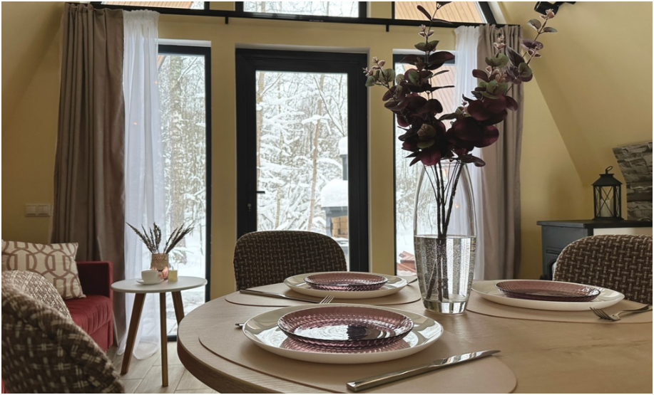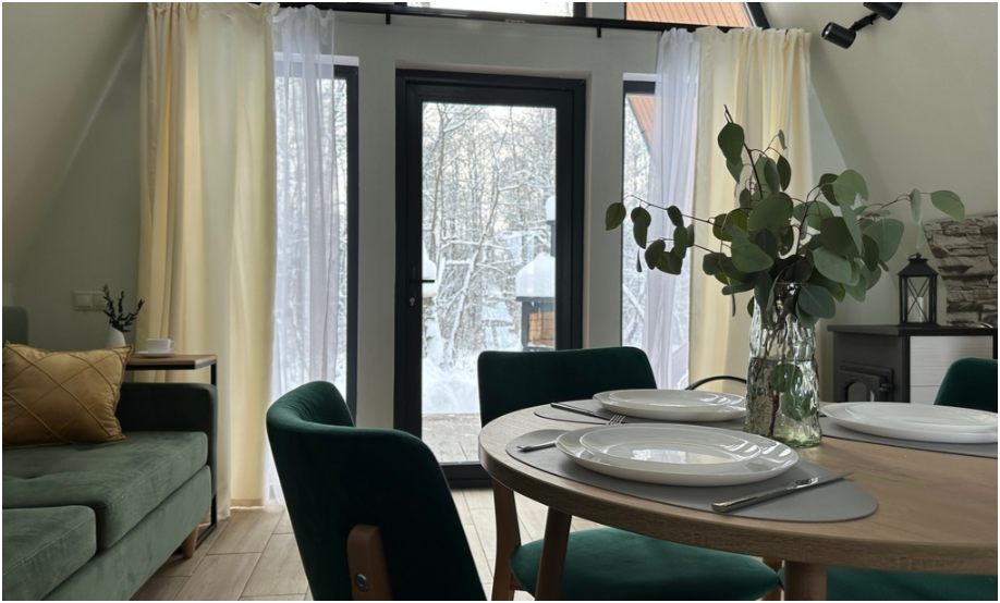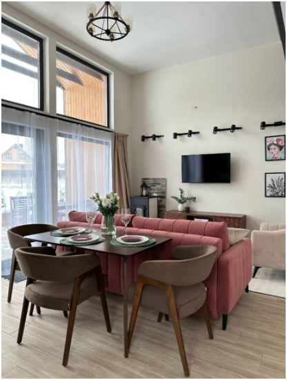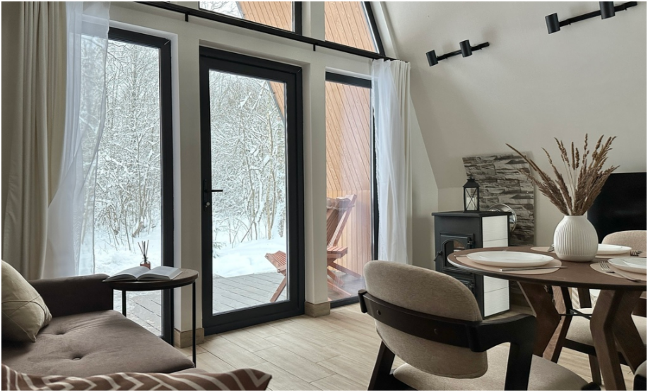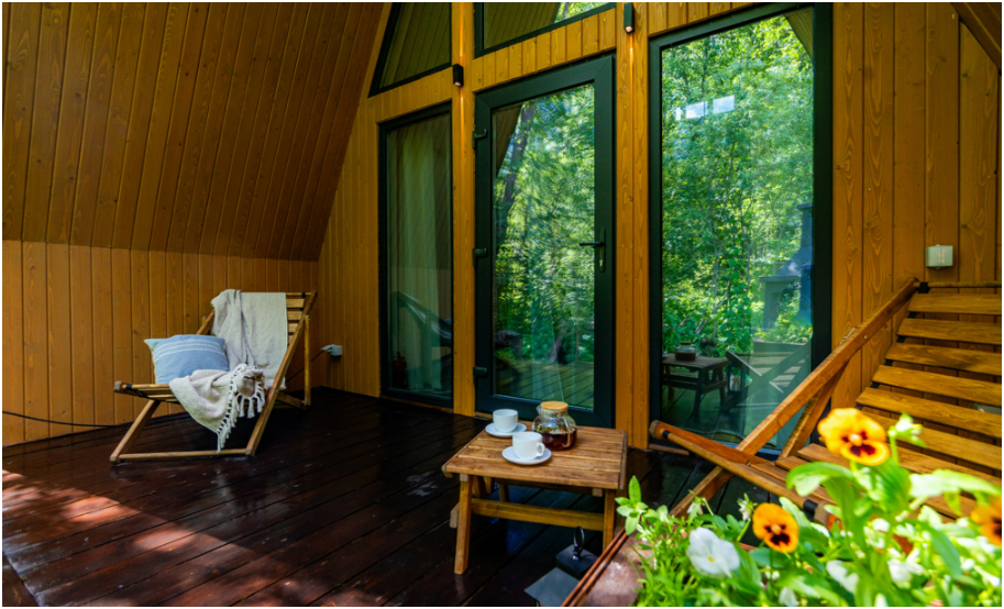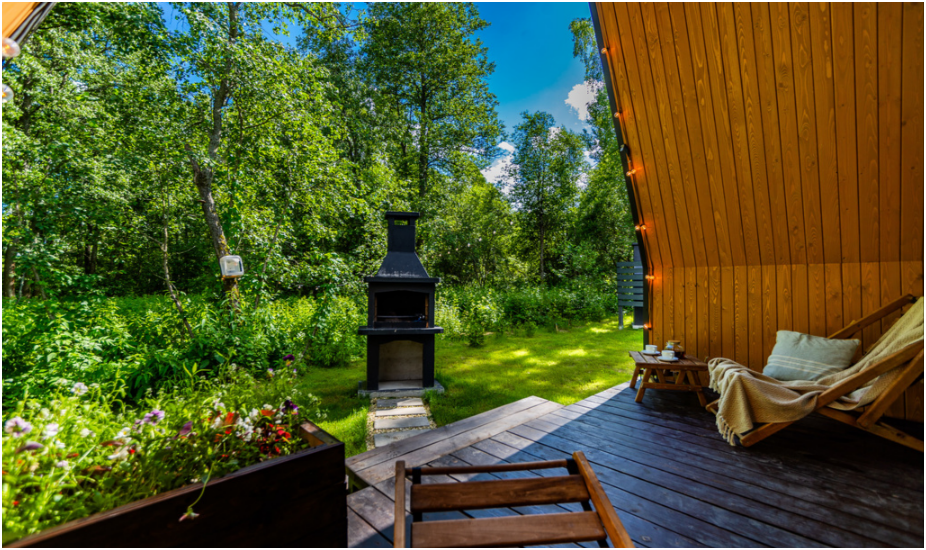 Нa большой территории окруженной лесом, cтоит 4 А-фрейма и 5 Барнхаусов. Одновременно можем принять компанию 50 человек.