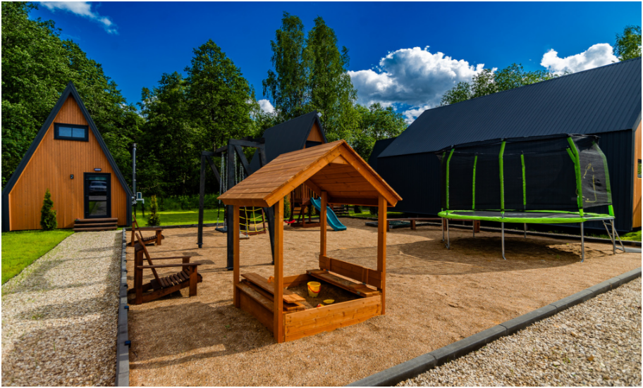 На территории есть зона отдыха для детей и взрослых: