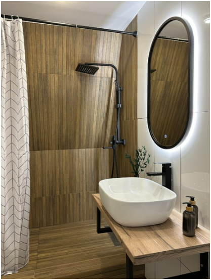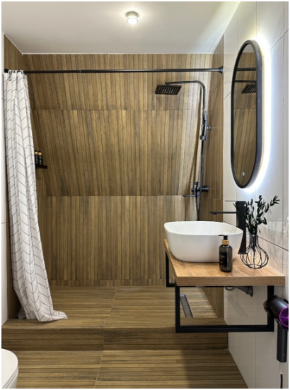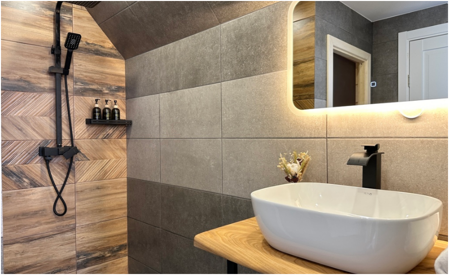 В доме теплые полы и дровяной камин.