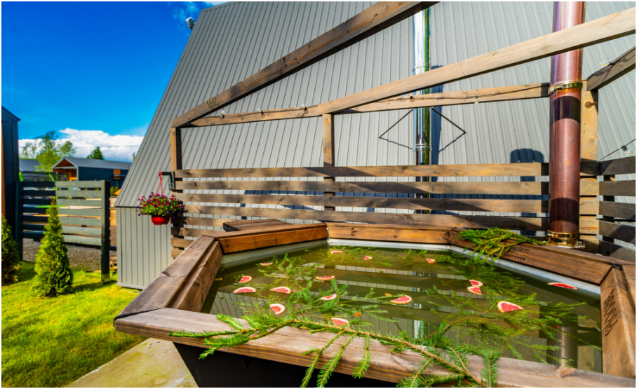 На территории банный чан. Цена 5000 руб. за 3 часа.