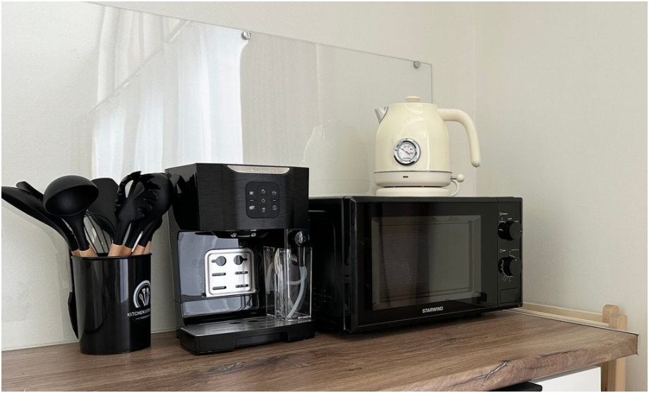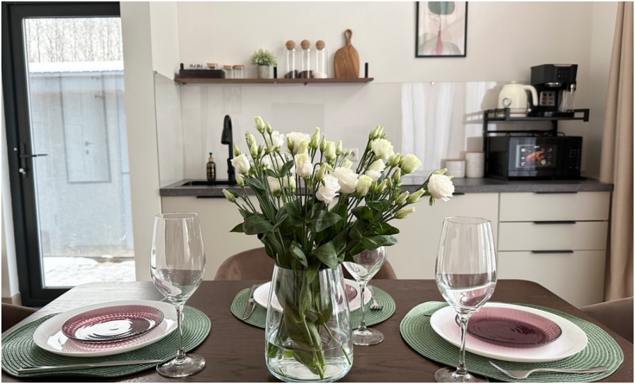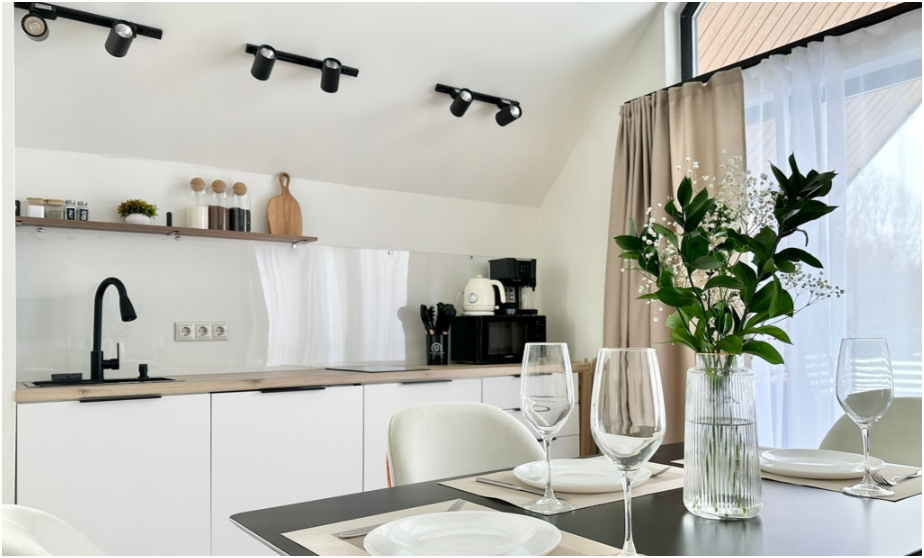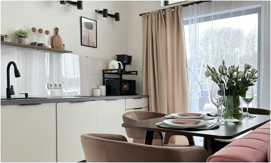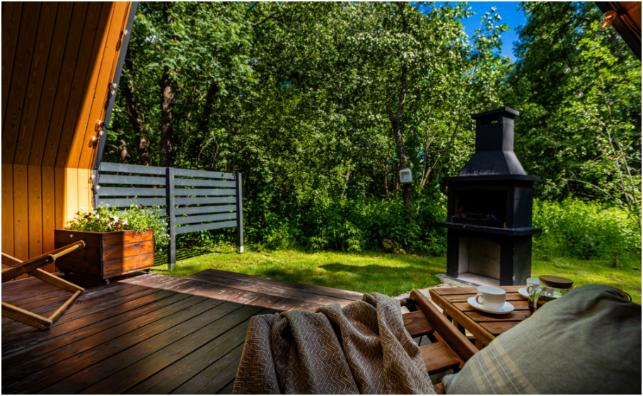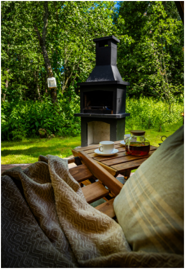 В каждом доме просторная терраса с мебелью, зона отдыха и барбекю в котором можно жарить мясо, рыбу, овощи даже в мороз. Решетку для барбекю и дрова дадим бесплатно. Уголь, березовые карандаши и розжиг можно приобрести у нас. В домах теплые полы и дровяные камины. В барнхаусах дровяные бани, инфракрасная сауна и хамам. Имеется набор продуктов: соль, перец, сахар, чай, кофе, подсолнечное масло. Полотенца, постельное бельё, гель для душа, мыло, шампунь, фен. Столовая посуда: тарелки, салатники, сковорода, кастрюли, приборы, бокалы, кружки.
