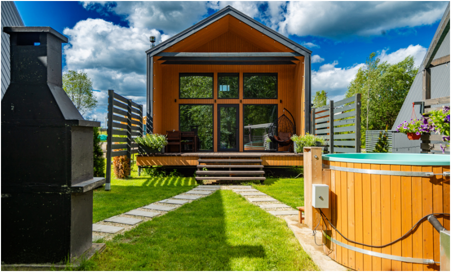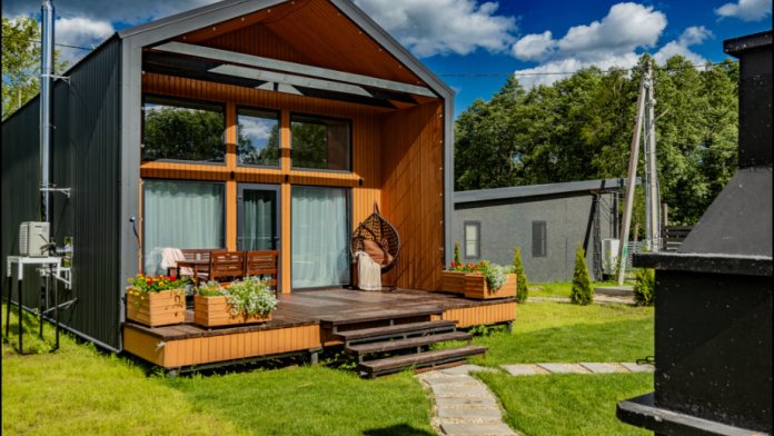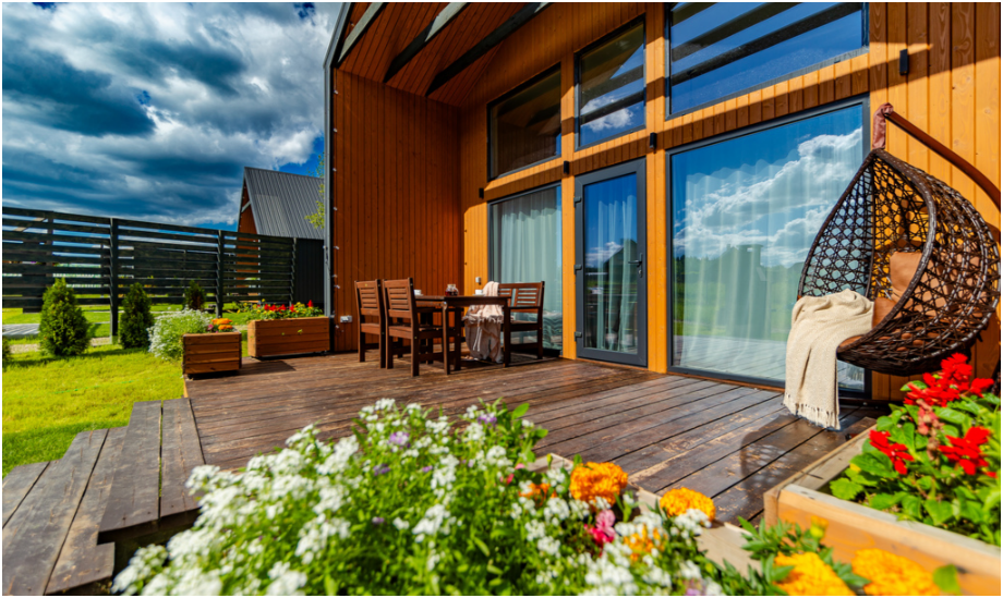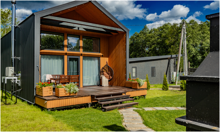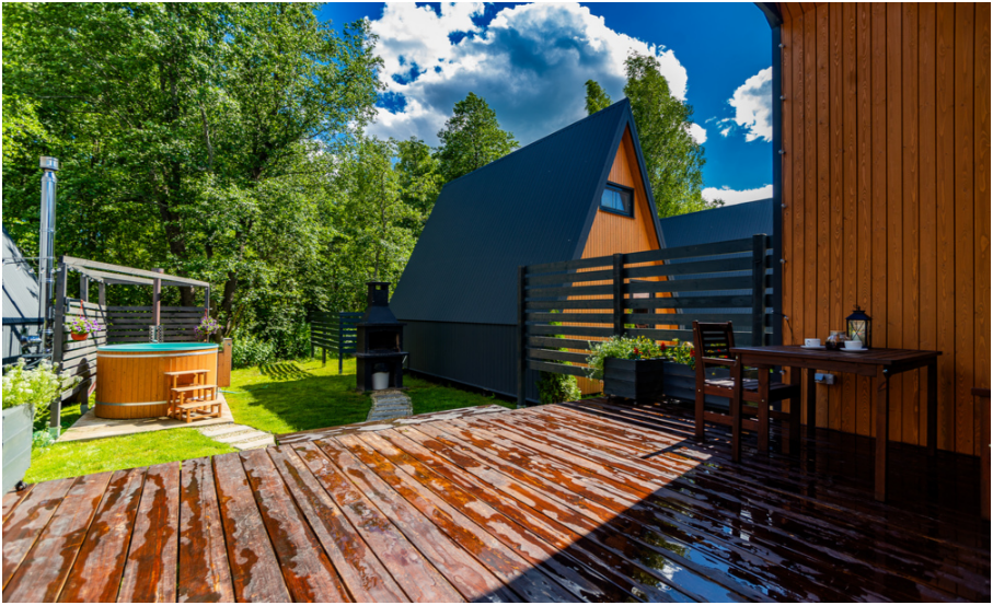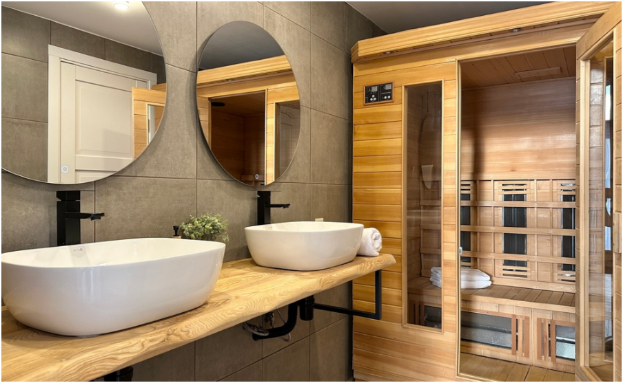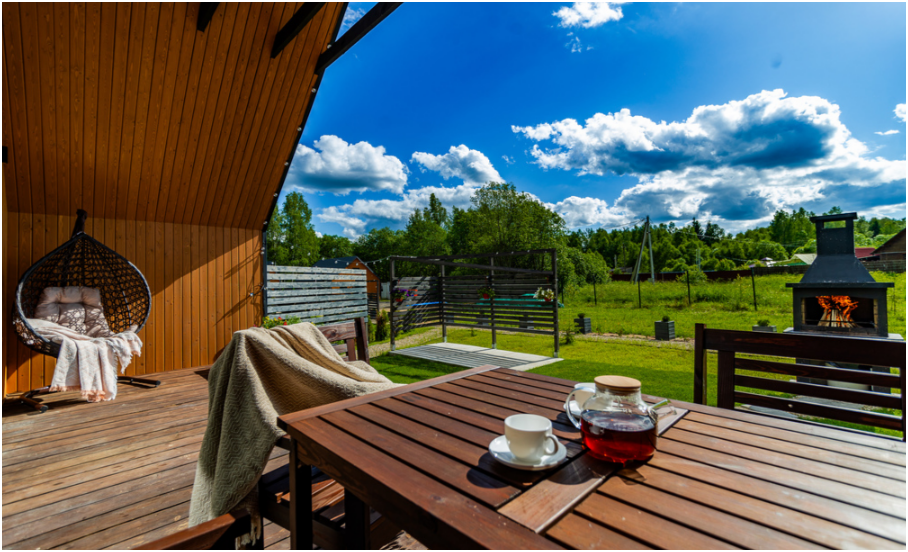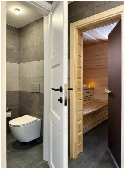 Дом с инфракрасной сауной, 2 этажа, просторная терраса с мебелью, зона отдыха и барбекю.