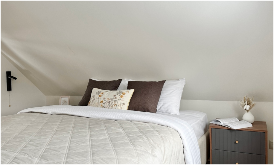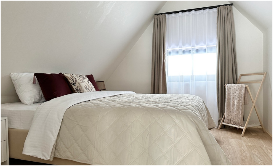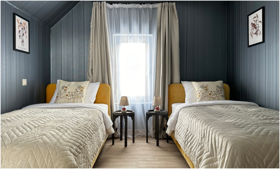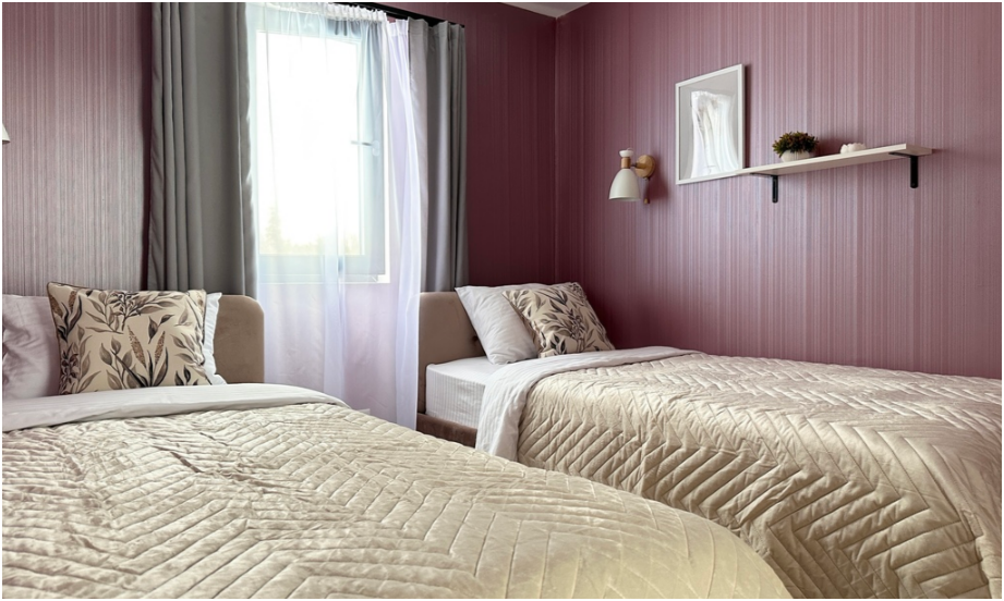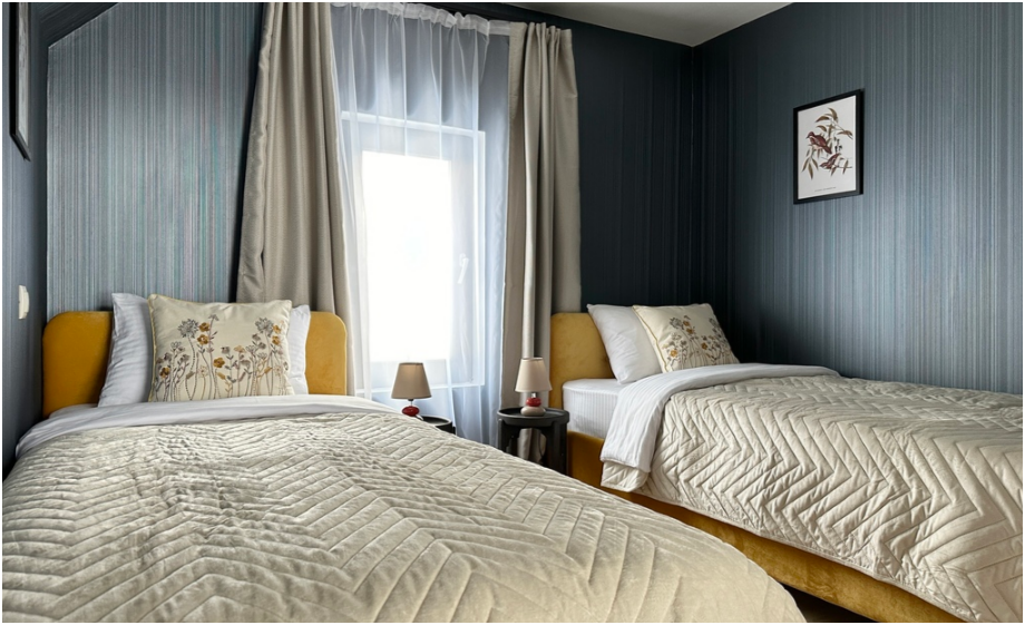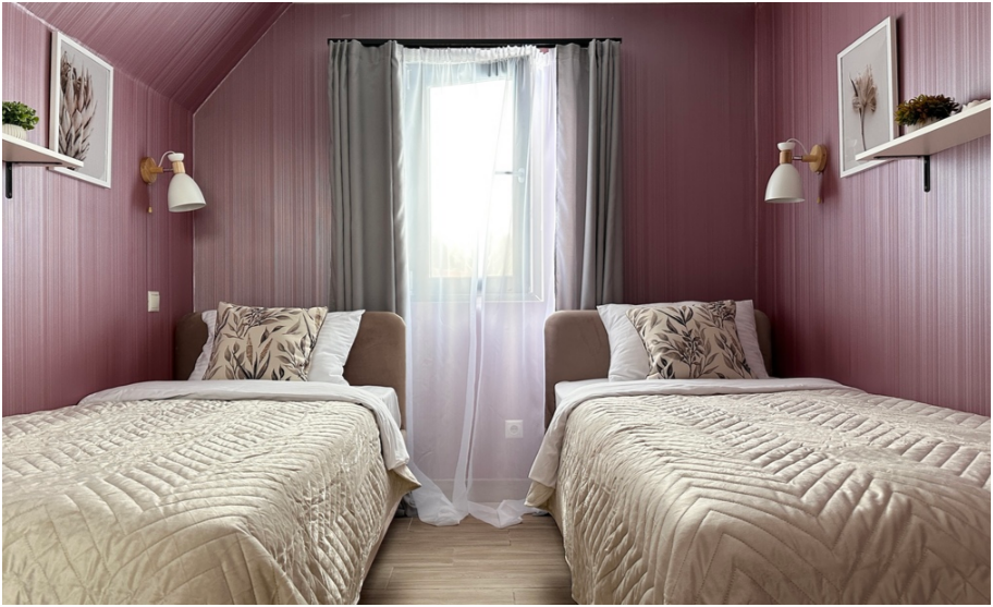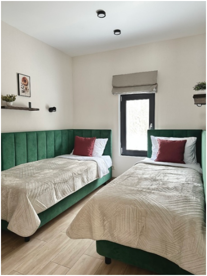 На первом этаже спальня с двумя уютными односпальными кроватями. На втором этаже расположена вторая спальня.