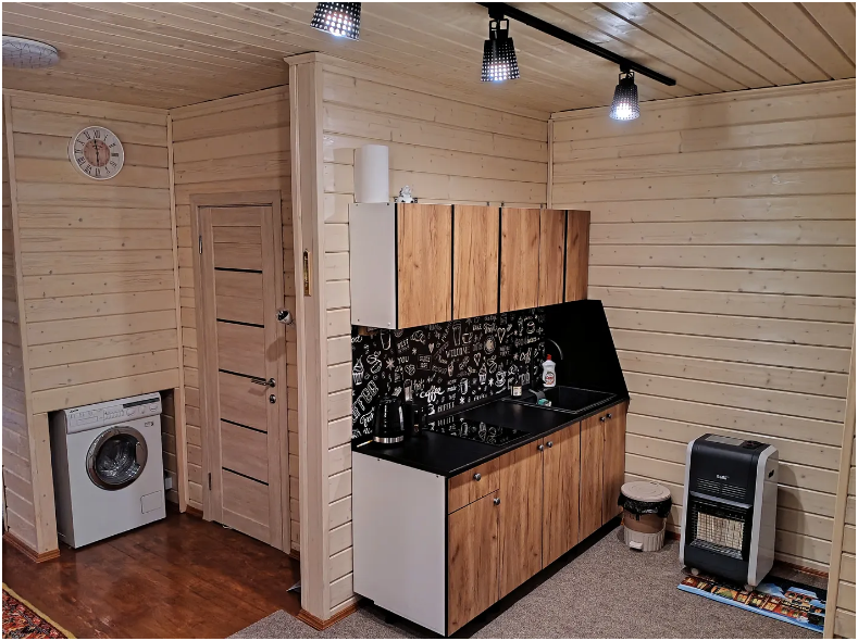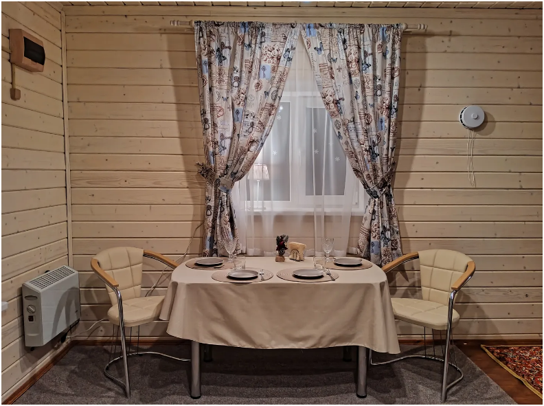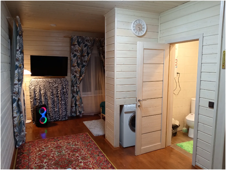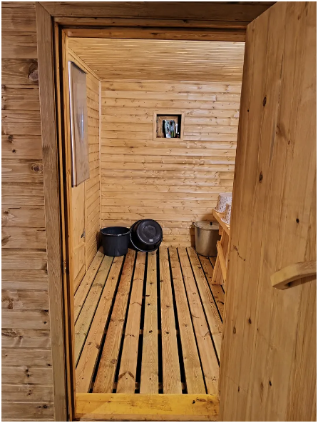 Домик со всеми удобствами, отдых для Вашей семьи до 4-х человек, принимает гостей круглый год. Один этаж, спальная комната, санузел с душем, кухня-студия и терраса. Двуспальная кровать, одноместная кровать-чердак, комфортная раскладушка. Баня на дровах с комнатой отдыха, парилка и моечное отделения раздельно. Баня по согласованию за отдельную стоимость.