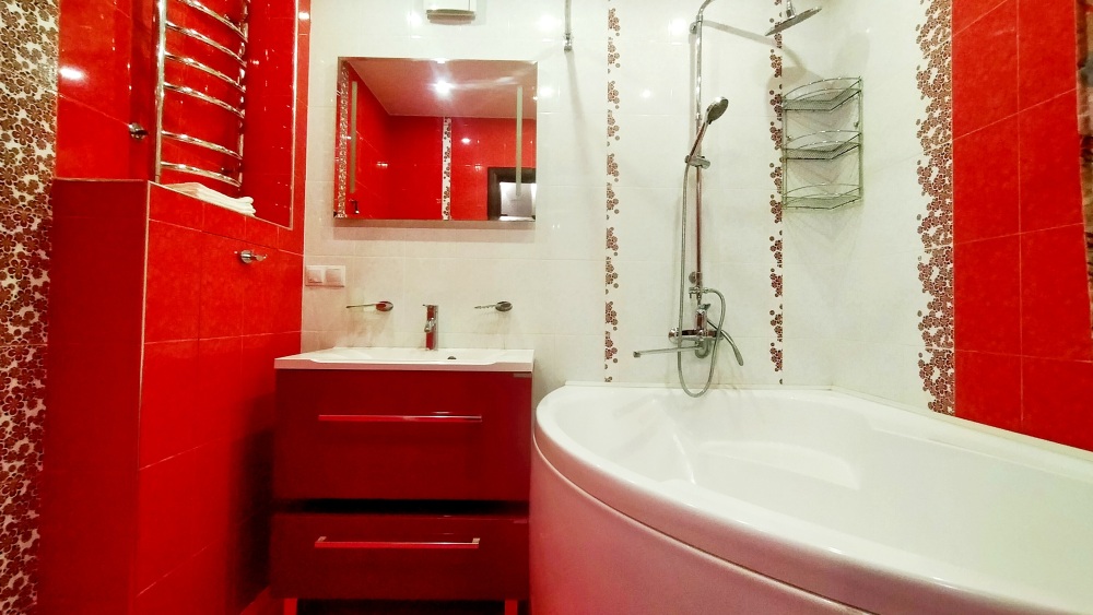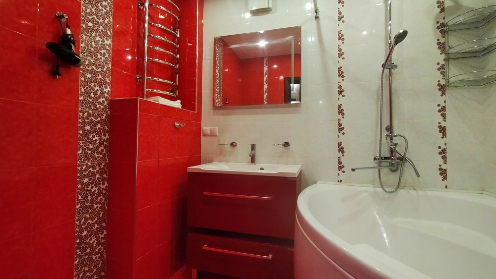 - ванная комната со средствами гигиены, водонагревателем и стиральной машиной автомат.