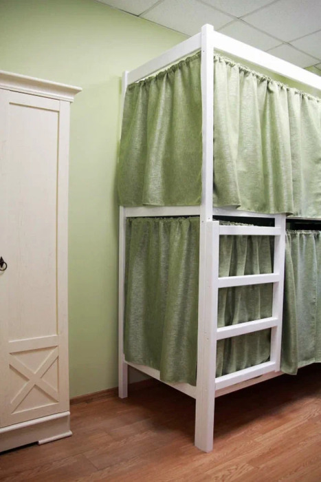 Уютный светлый четырехместный номер. В комнате 2 двухъярусные кровати со шторками и шкаф-гардероб. Общий санузел.