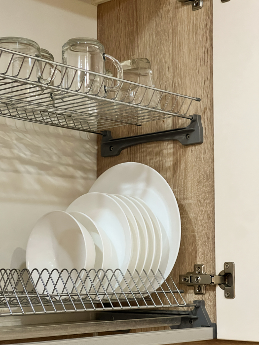 - кухня с холодильником, плитой, микроволновой печью, электрическим чайником, тостером и посудой.