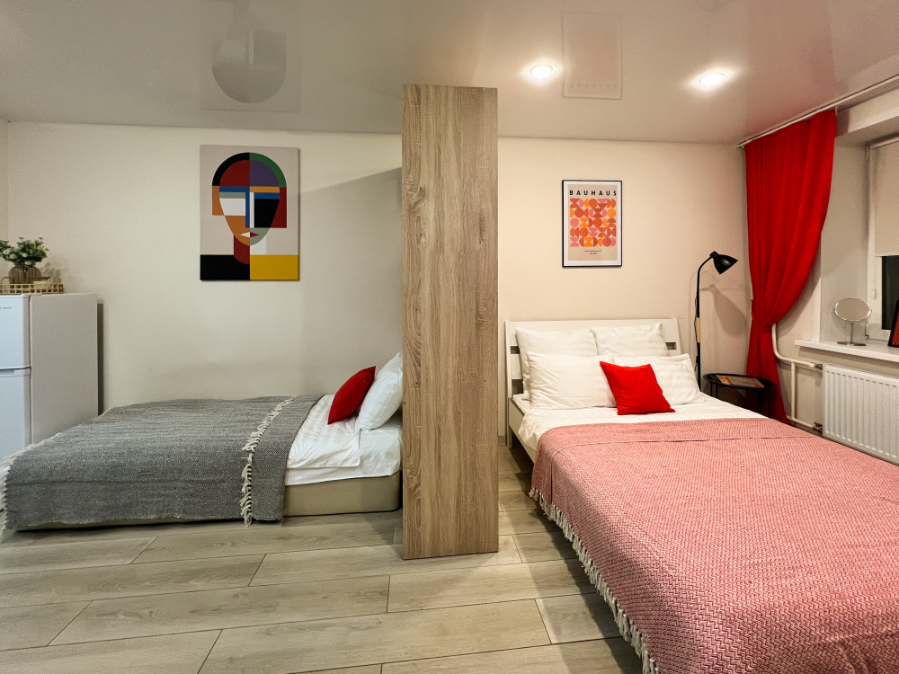 В данной студии предусмотрено размещение до трёх человек: 1 двухспальная кровать и 1 односпальная кровать (смотрите фото). Раздельных 2 спальных места.