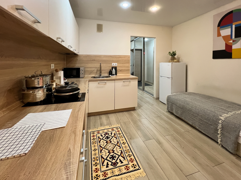 Студия идеально подходит для бизнес-поездок (центральное расположение, шустрый Wi-Fi) и соло-путешественников.