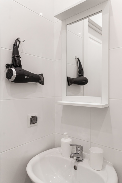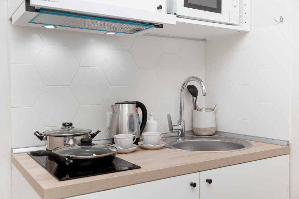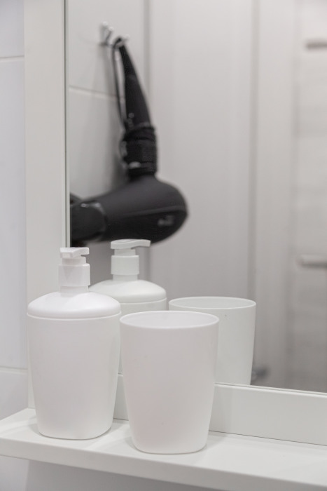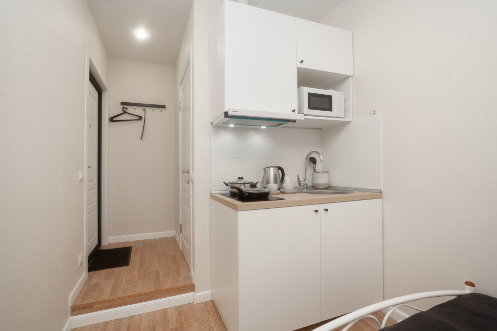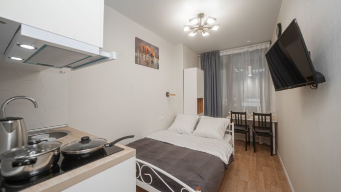 Студия оборудована всем, что нужно для Вашего отдыха: телевизор,чистое постельное белье из прачечной , оборудованная кухня, гладильные принадлежности, фен, стиральная машина, бесплатный Wi-Fi. Вам не придется срочно бежать в магазин за кружками или полотенцем – мы уже позаботились обо всем.