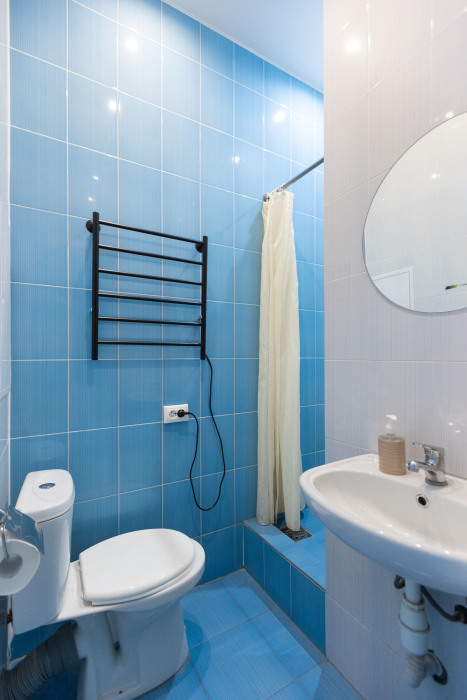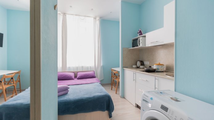 Студия оборудована всем, что нужно для Вашего отдыха: телевизор, постельное белье, средства гигиены, оборудованная кухня, гладильные принадлежности, фен, стиральная машина, бесплатный Wi-Fi. Вам не придется срочно бежать в магазин за кружками или полотенцем – мы уже позаботились обо всем.