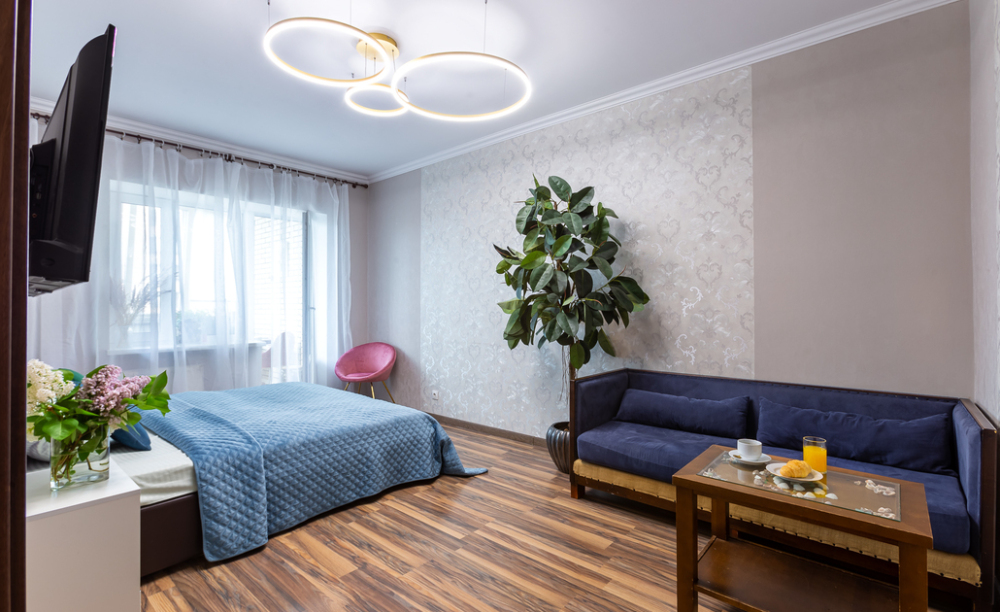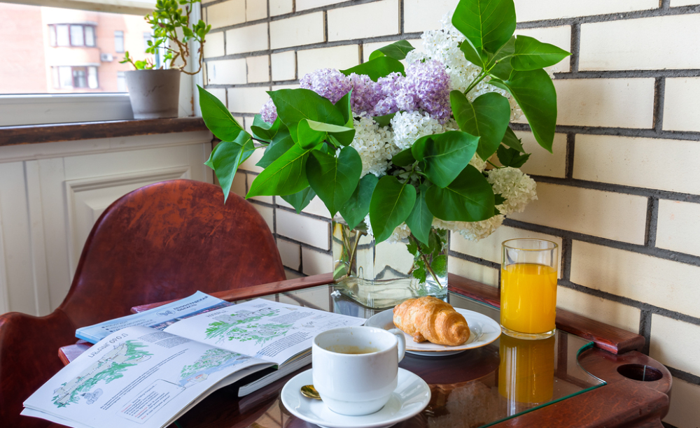 Просторная 1-комнатная видовая квартира с камином на террасе.