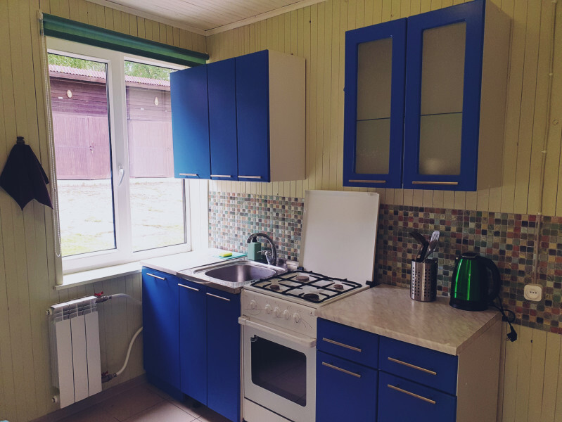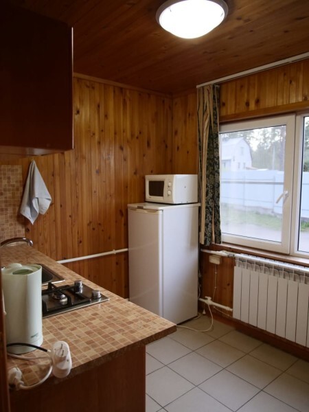 В кухне: холодильник, микроволновая печь, электрочайник, газовая плита, обеденный стол, вся необходимая посуда, раскладной диван, телевизор.