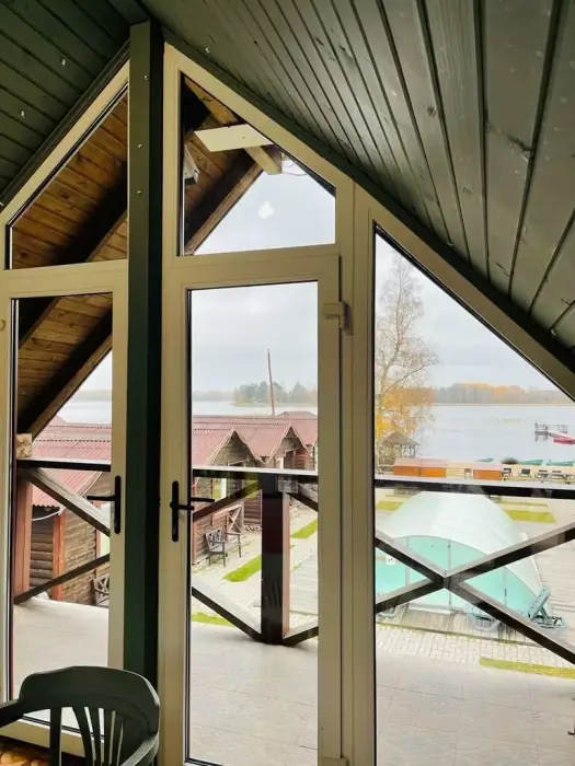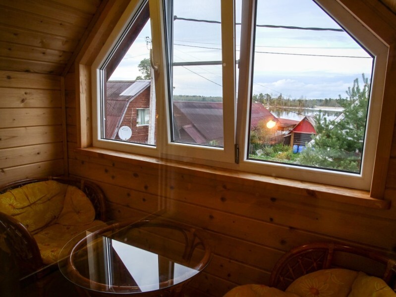 На втором этаже просторная спальня с балконом, вид на озеро.