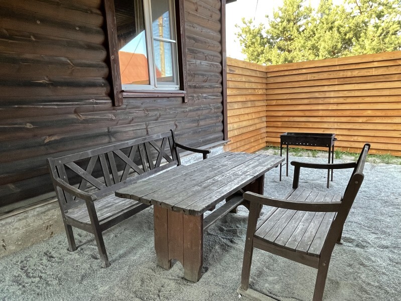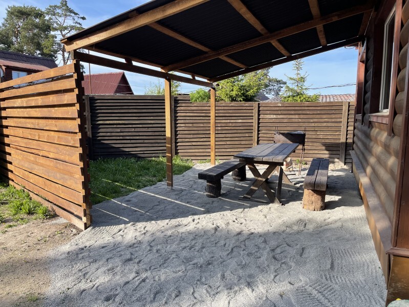 Открытая терраса. В помещении коттеджа располагается русская баня с отдельным входом (баня оплачивается отдельно).