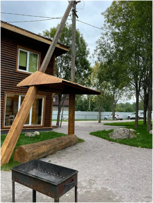 Собственная крытая мангальная зона около каждой половины коттеджа.