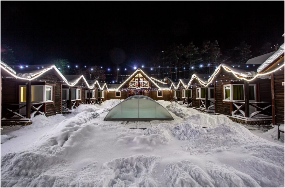 - две русские бани на дровах, режим работы бани с 11:00 до 00:00, только по предварительной записи.