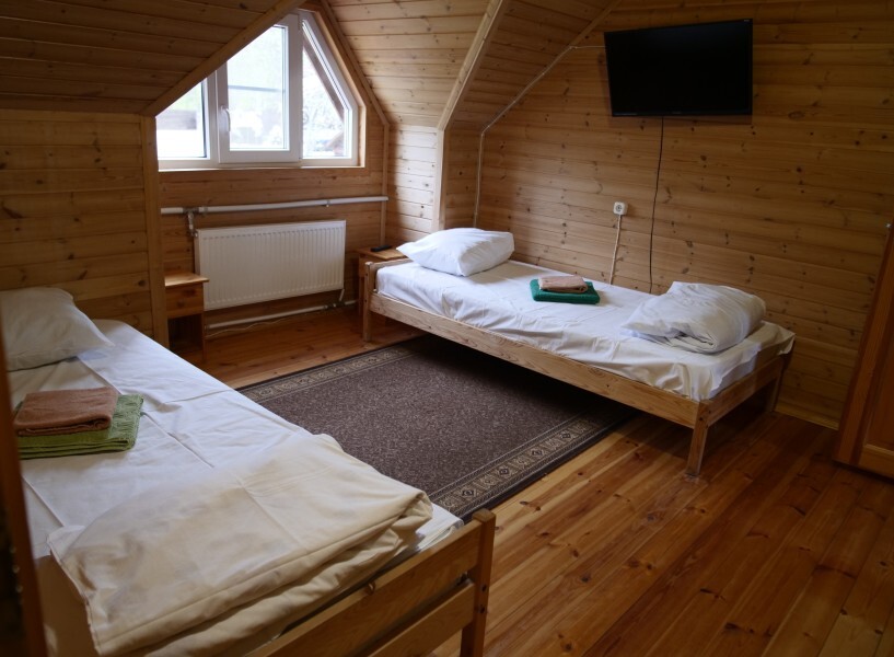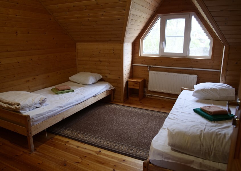 2 этаж: в одной спальне – две односпальные кровати, телевизор, шкаф, санузел.