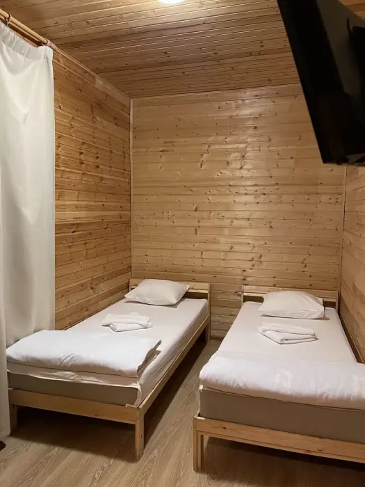 Один двухэтажный корпус на 8 двухместных номеров эконом.