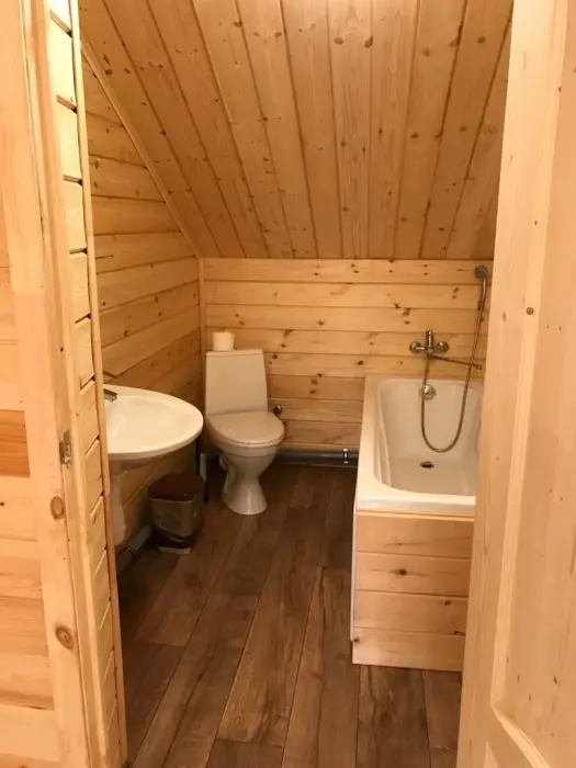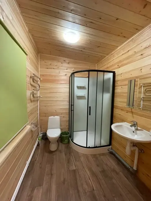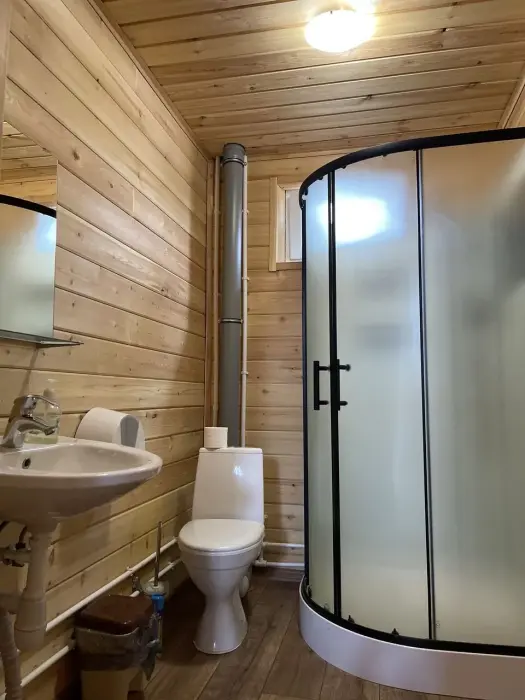 Душевая, санузел, финская сауна. Стоимость сауны 500 рублей в час.
