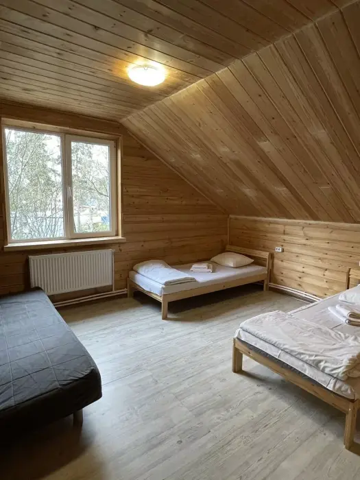 2 этаж: три спальни: в каждой по две односпальные кровати, телевизор.