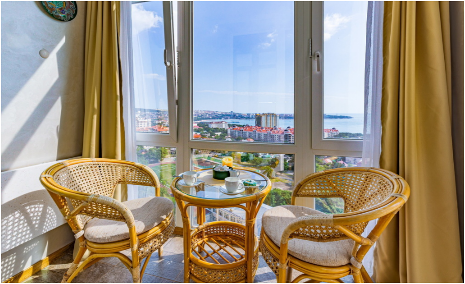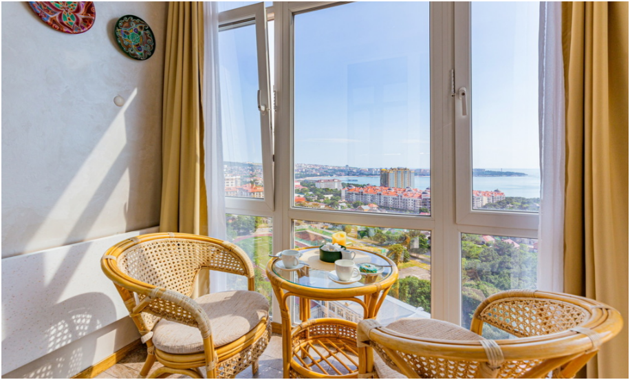 Уютные 2-комнатные апартаменты, расположены в самом центре города, потрясающий вид на море и бухту.