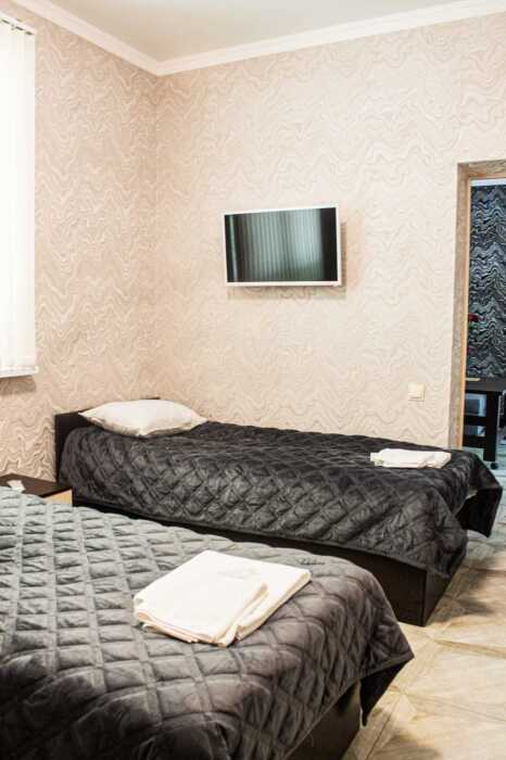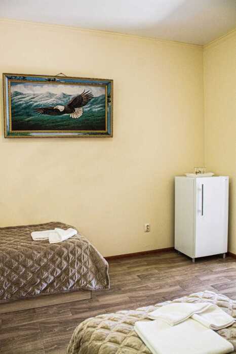 Двухместный номер на 1 этаже, оснащен всем необходимым для комфортного отдыха, возле каждого номера есть небольшая зона отдыха.