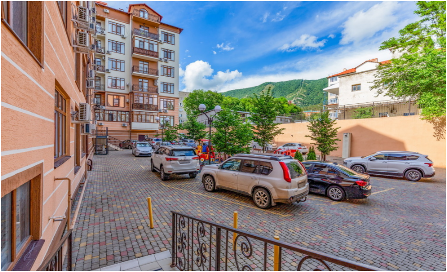 Рядом: самая безопасная и уютная набережная, лечебная база, бассейн, кухня «Красной талки», Кавказ, Ломоносова. Дельфинарий, канатные дороги в парк «Олимп» и «Сафари парк», аквапарк «Золотая Бухта», Преображенский храм, пешие тропы в горы (Крест, парк «Олимп»), гольф-клуб, прокаты для активного вида отдыха на воде, в воздухе и на земле. Супермаркеты с отделами готовой еды - Табрис, Перекресток, Магнит, Пятёрочка, отделения банков, аптеки, больница - в 500 м. Мини-маркет – во дворе.
