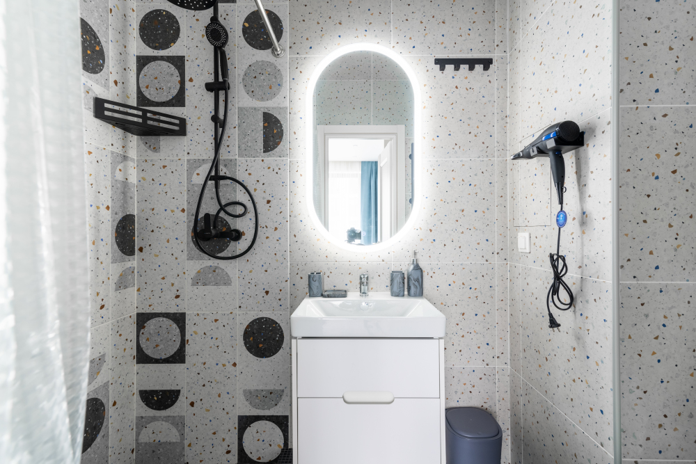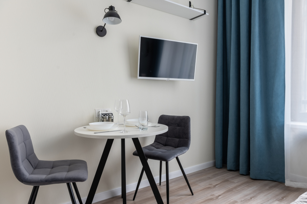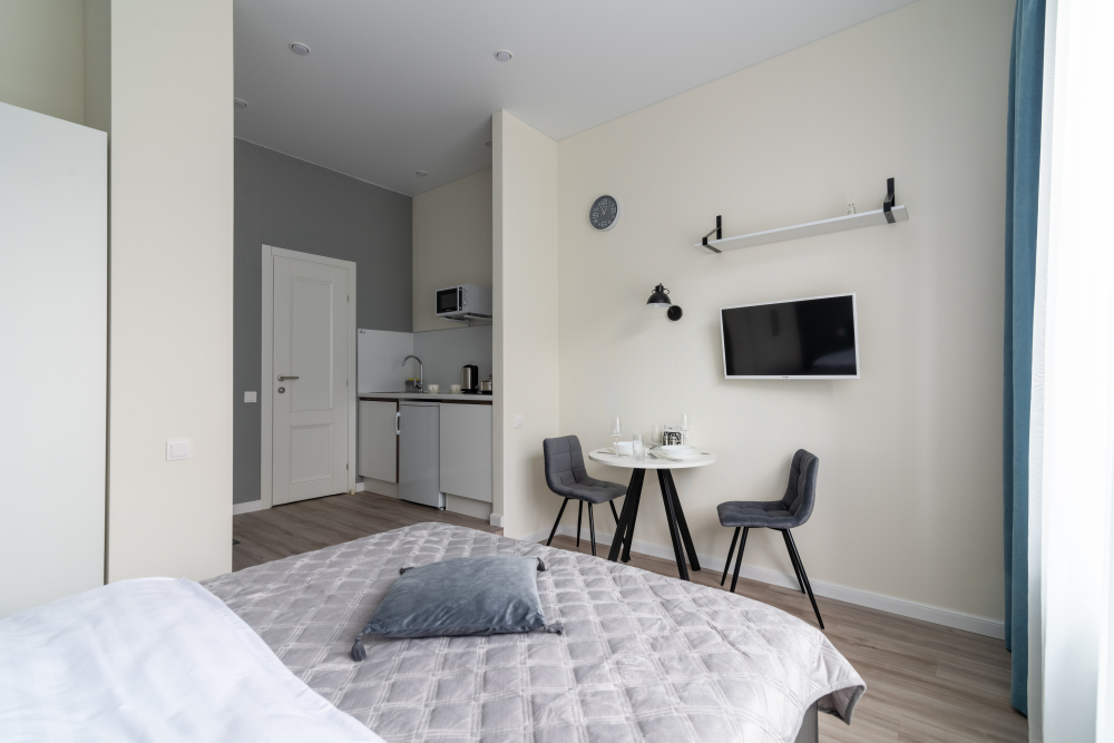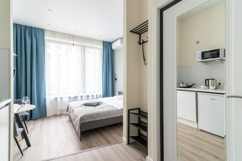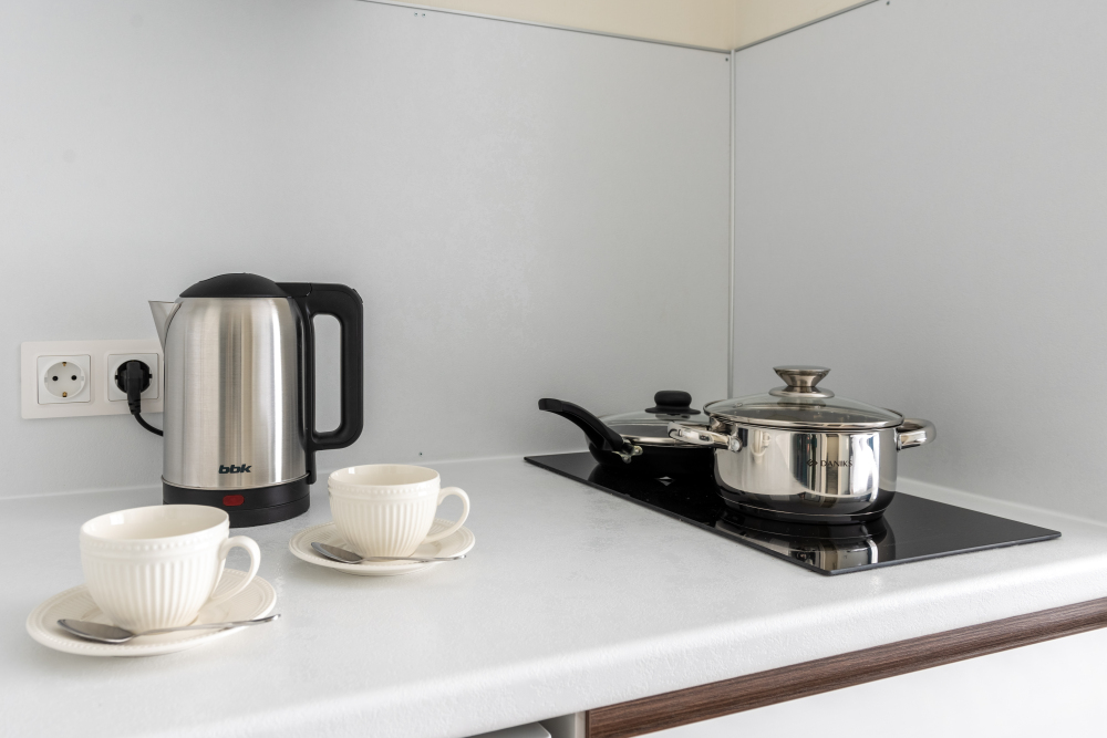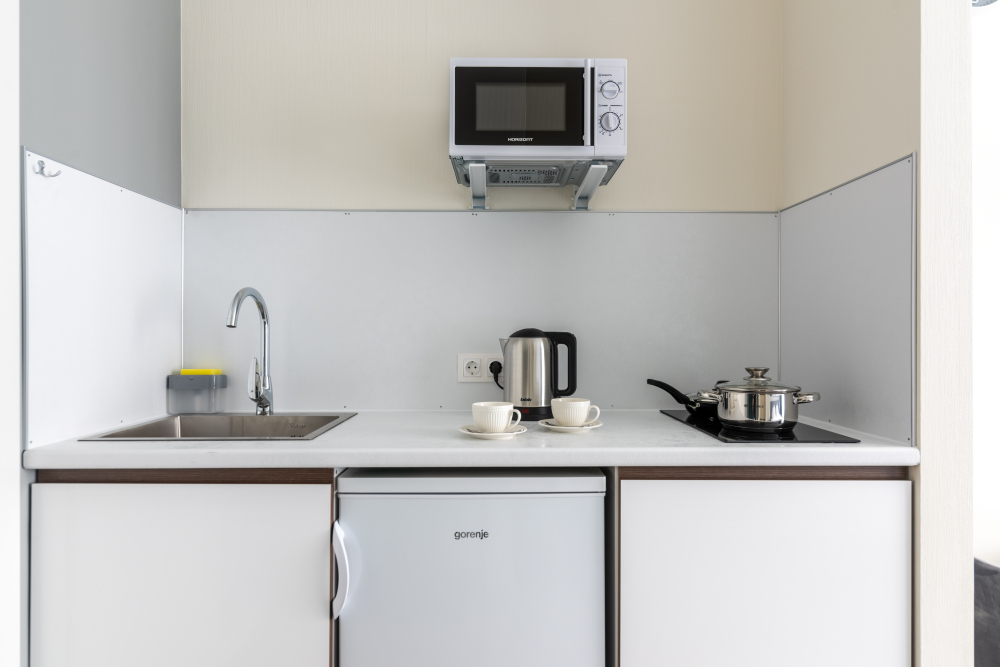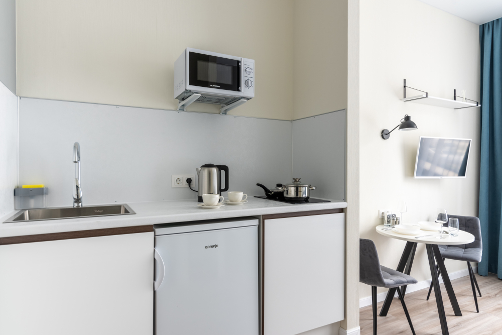 Оснащение: телевизор, кухонная зона, холодильник, электрический чайник, микроволновая печь, фен.