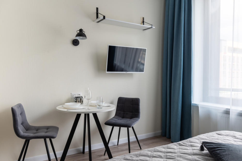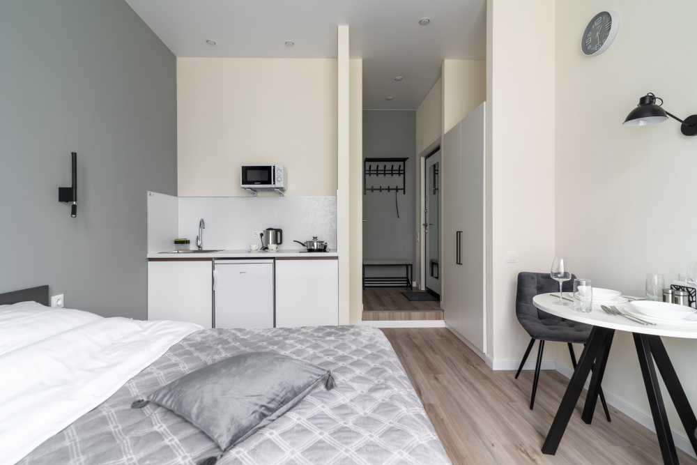 Оснащение: телевизор, кухонная зона, холодильник, электрический чайник, микроволновая печь, фен.