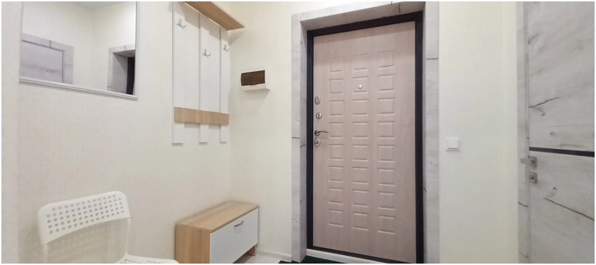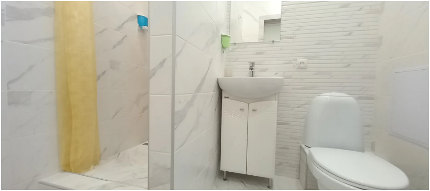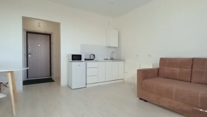 - оборудование: холодильник, микроволновая печь, плита, посуда, столовые приборы, чайник, стиральная машина, водонагреватель, гладильная доска, фен, утюг, сушилка для белья.