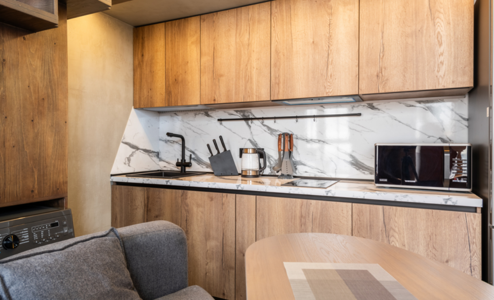 Мультимедиа: Wi-Fi, телевизор смарт ТВ; скоростной интернет. Бытовая техника: кондиционер, холодильник, плита, стиральная машина, сушильная машина, СВЧ; кофеварка, блендер для коктейлей и смузи!