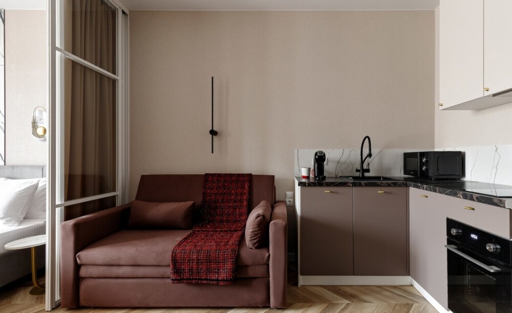Уютная и большая студия Бордо с отдельной зоной для сна расположена в ЖК «Абрикосово» на 23 этаже. На территории жилого комплекса абсолютно безопасно — есть консьерж и камеры наблюдения. Для автопутешественников предусмотрена бесплатная стихийная парковка.